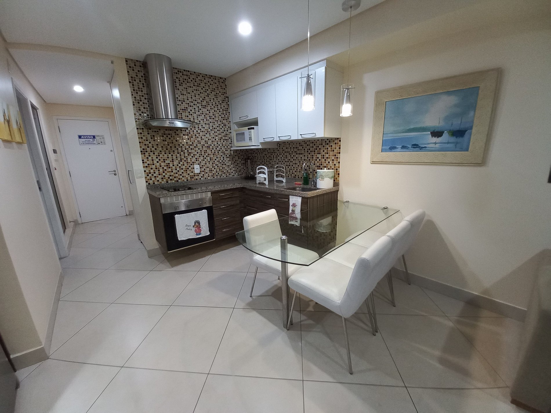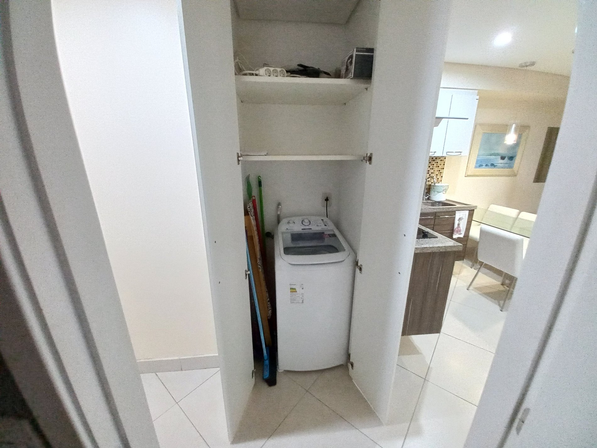 The apartment is fully furnished and equipped to ensure a comfortable stay. It offers air conditioning in the bedrooms, TV, Wi-Fi, an open kitchen with refrigerator, stove, microwave, and cooking utensils, plus a laundry area with washing machine. Living room integrated with the balcony featuring a beautiful ocean view. Bed linen and towels are included.