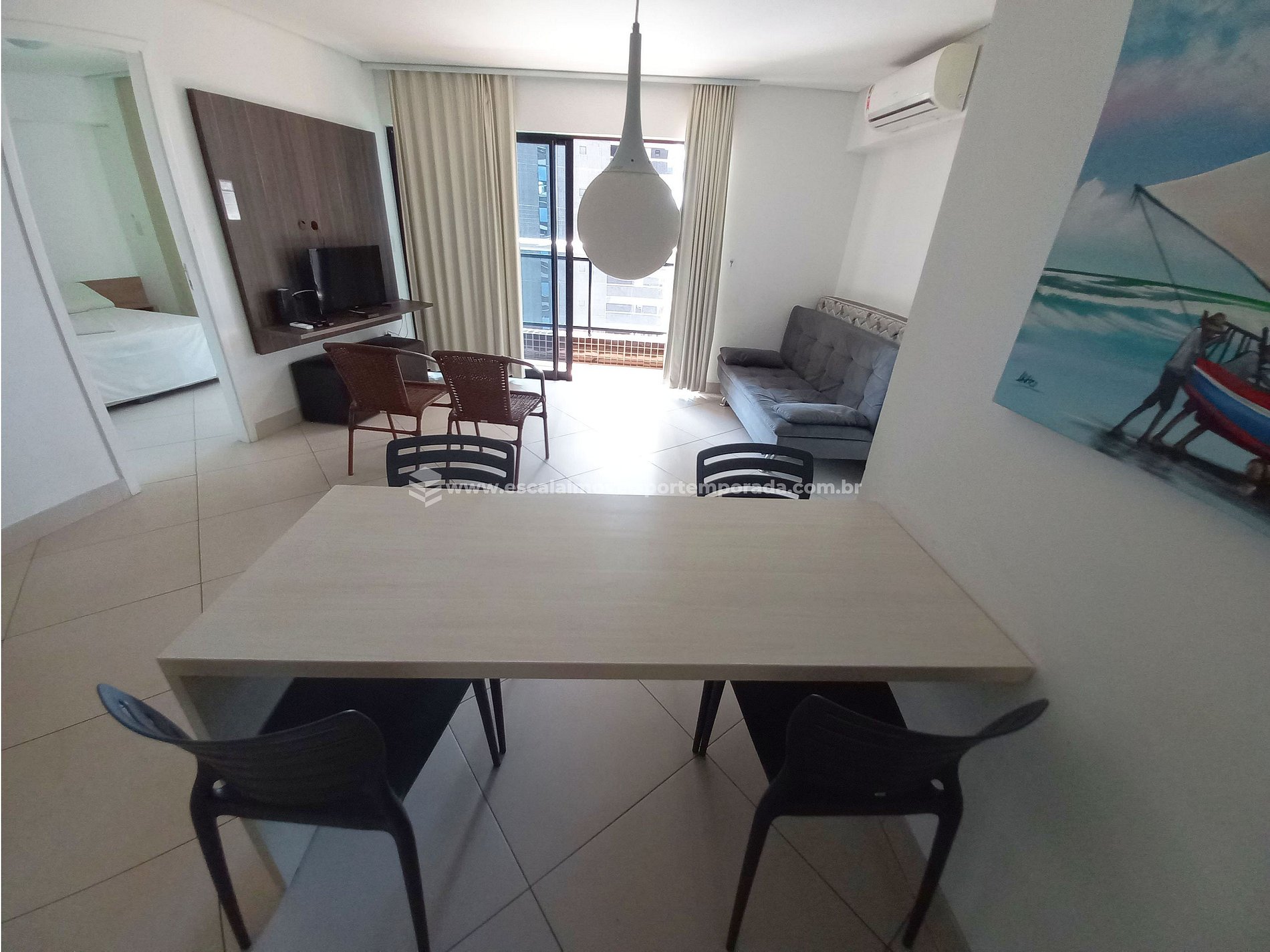 High standard apartment, 2 bedrooms, living room and kitchen, 100% furnished with designed furniture, TV, household utensils, privileged location in the best of Beira Mar in Fortaleza.