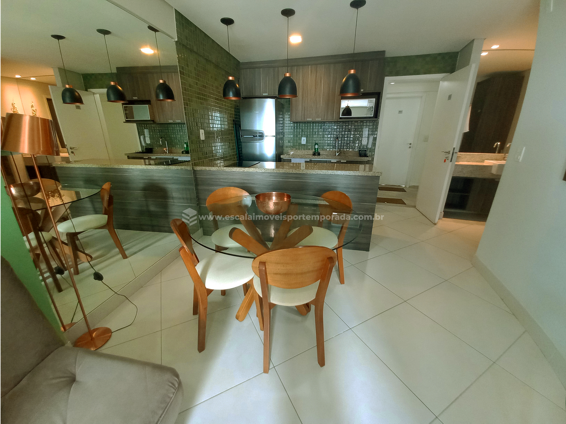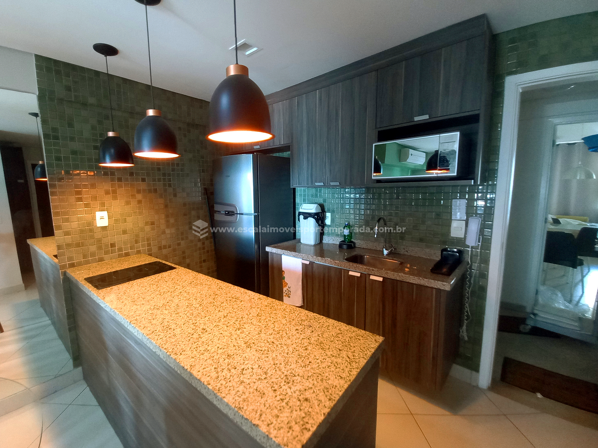 * Cozinha equipada com cooktop, geladeira, microondas