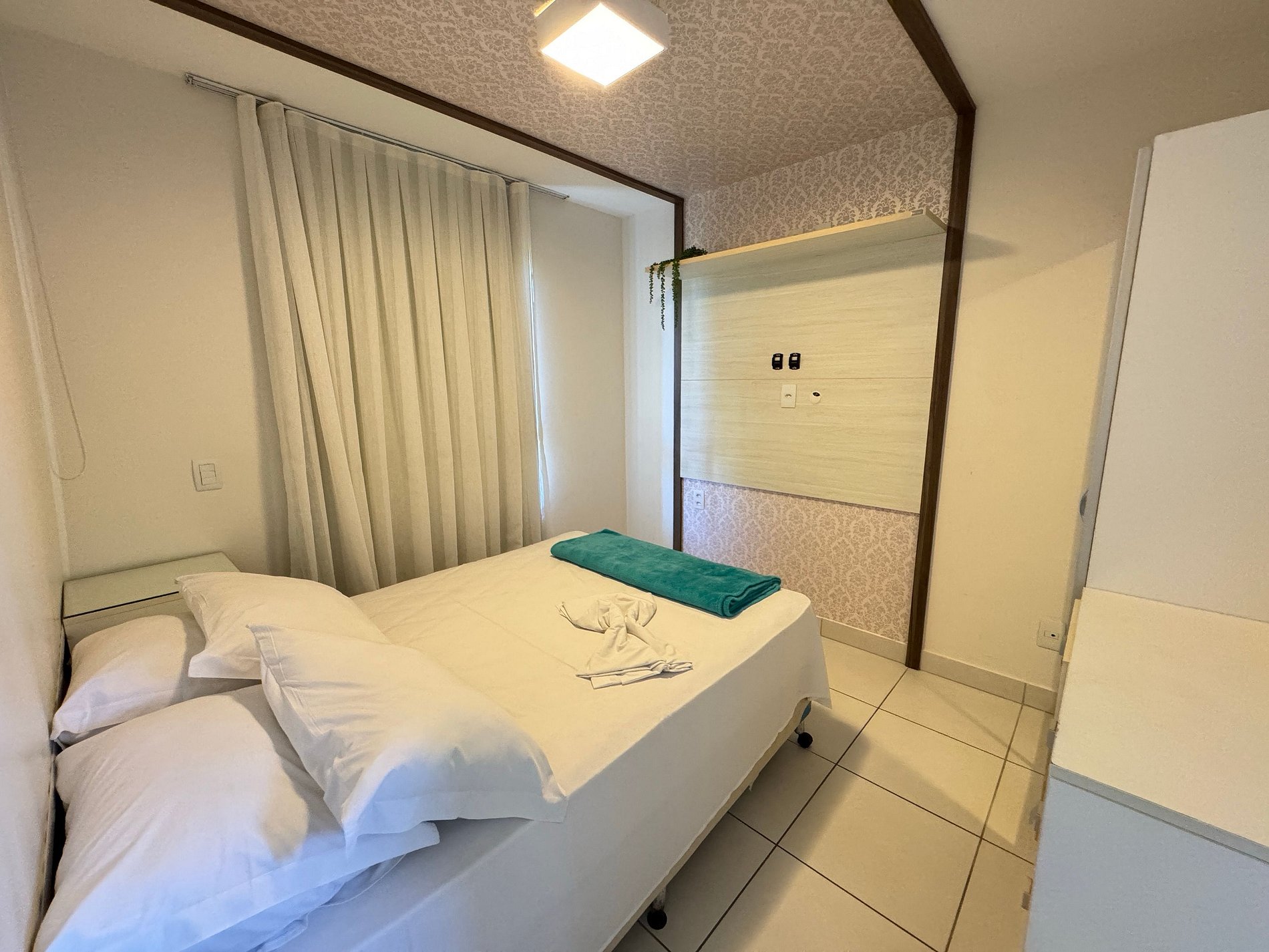 Trabalhamos com enxoval padrão de hotel na cor branca.