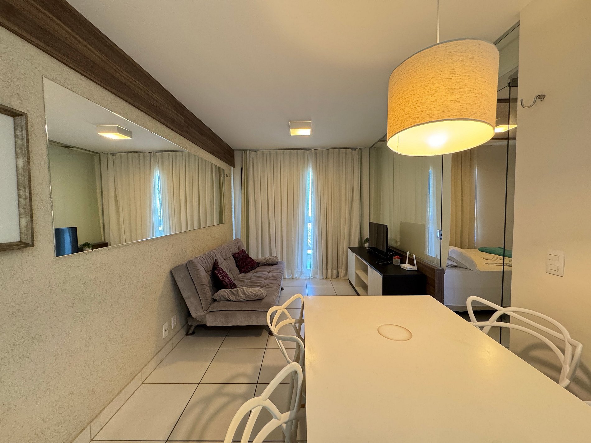 High standard apartments, fine furniture, with balcony and suite view. With an area of 39sqm, 1 suite, living room and kitchen. 100% furnished with custom designed furniture, TV, household items. 1 parking space.