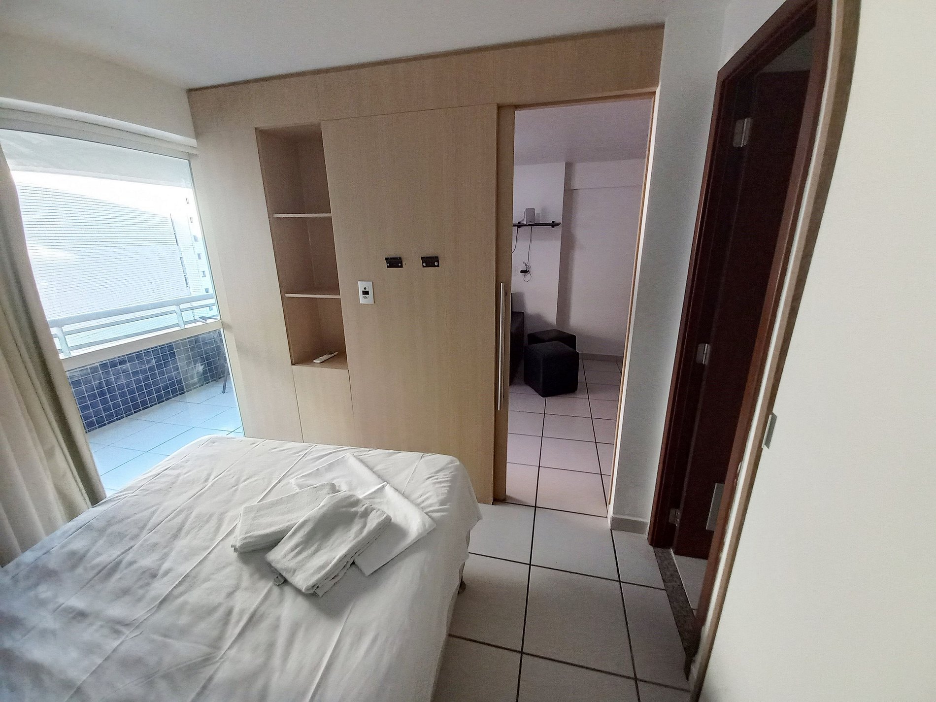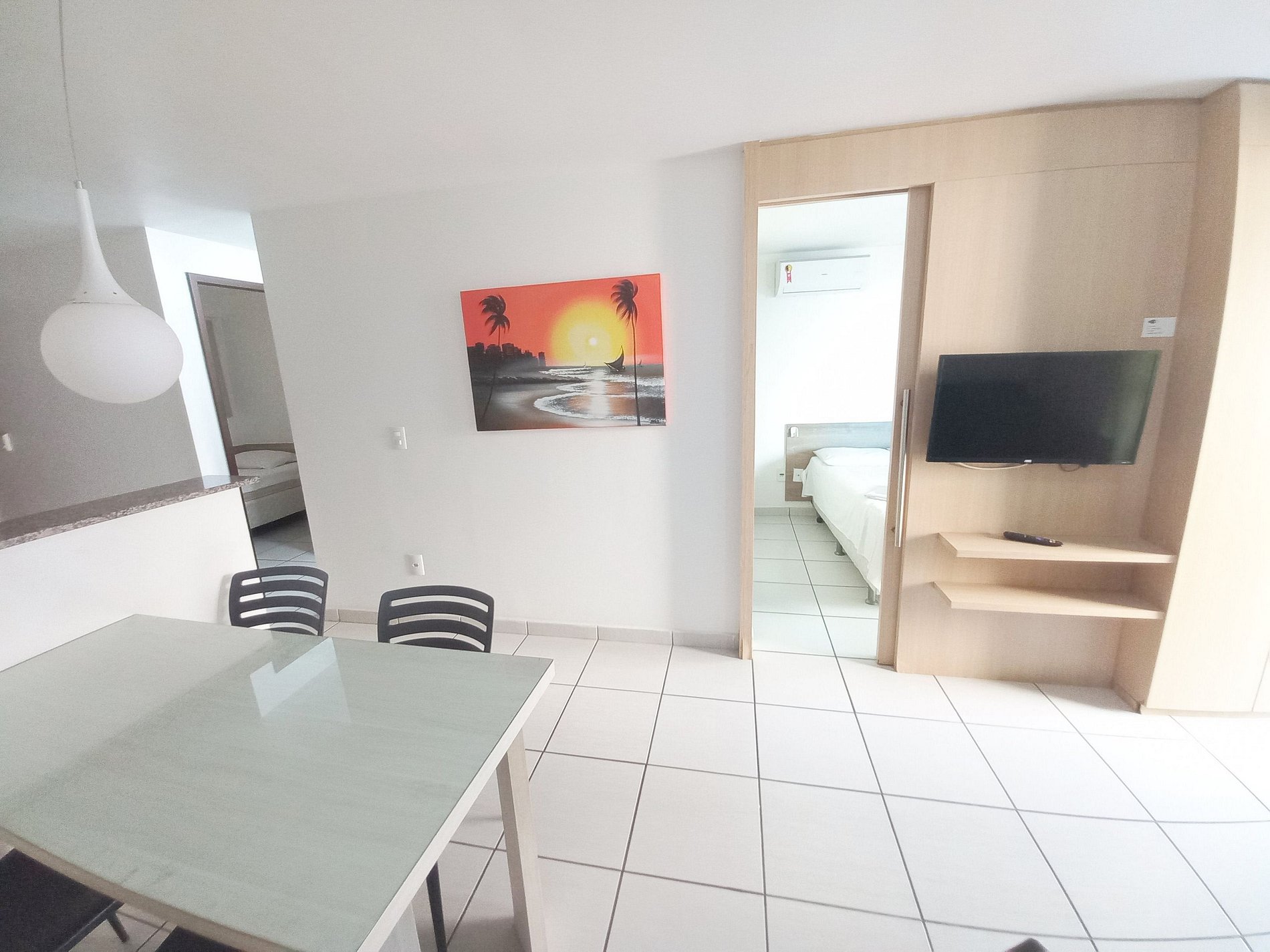 Apartamento 100% mobiliado no Beach Class Fortaleza. Imóvel tem 2 quartos sendo 1 suíte com cama casal e ar, quarto com cama solteiro e ar, sala com sofá cama. Acomoda até 05 pessoas.