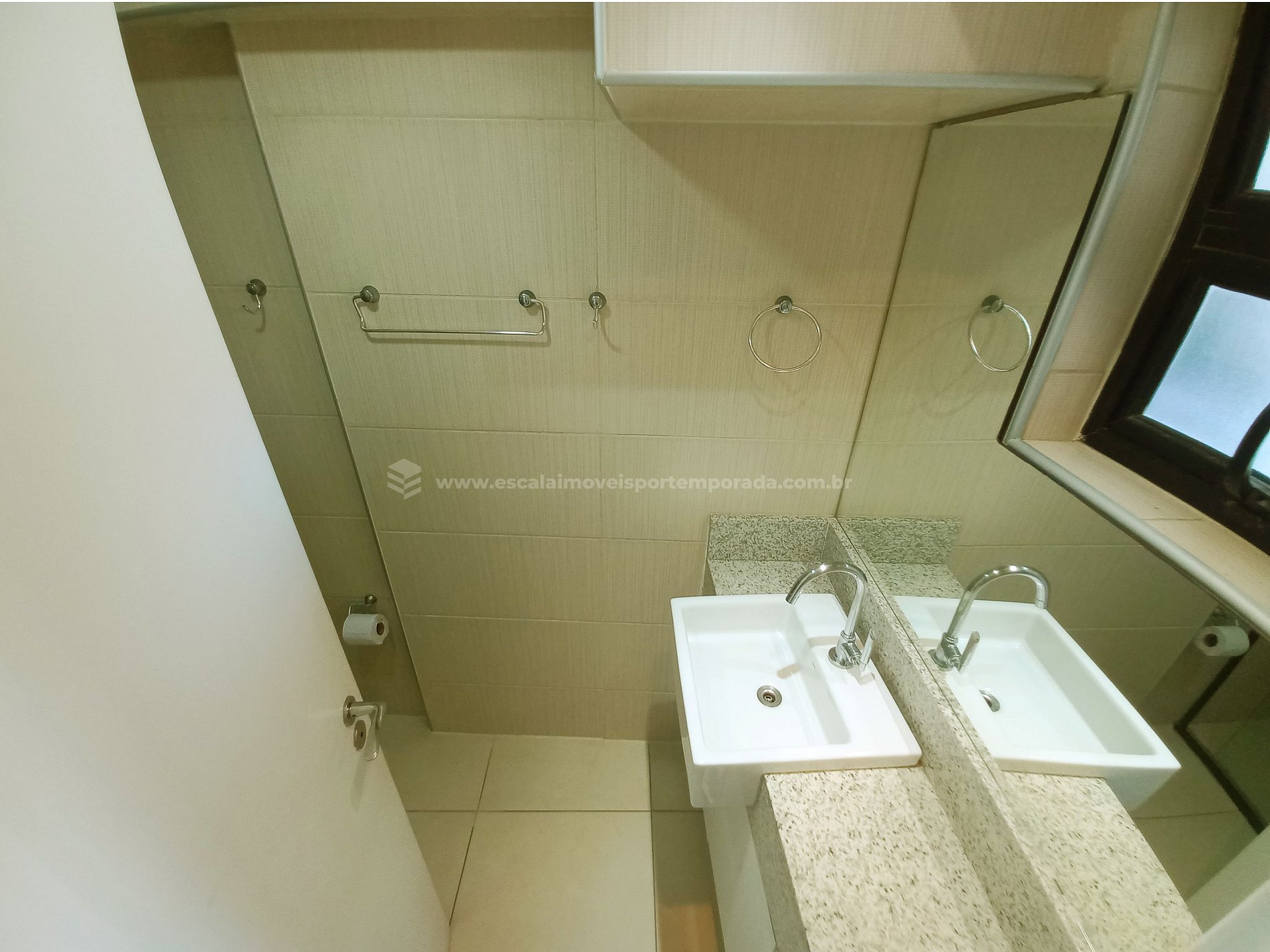 O imóvel tem 2 quartos com cama casal e ar, sendo 1 suíte. 1 banheiro social. Sala com ar condicionado. Cozinha equipada.