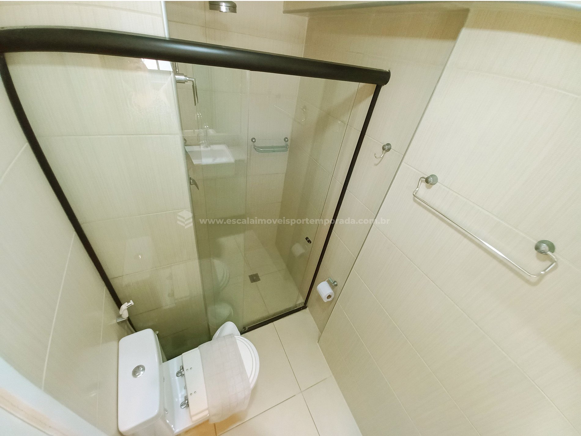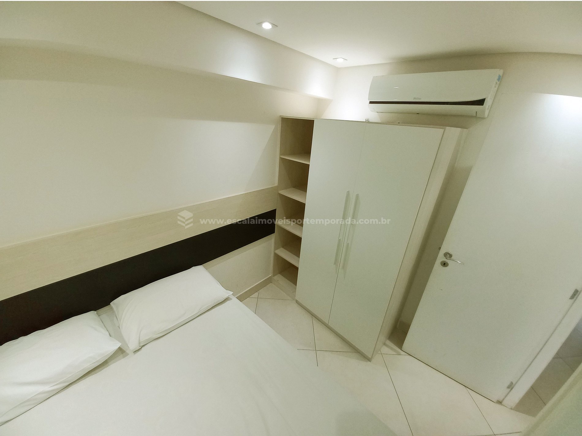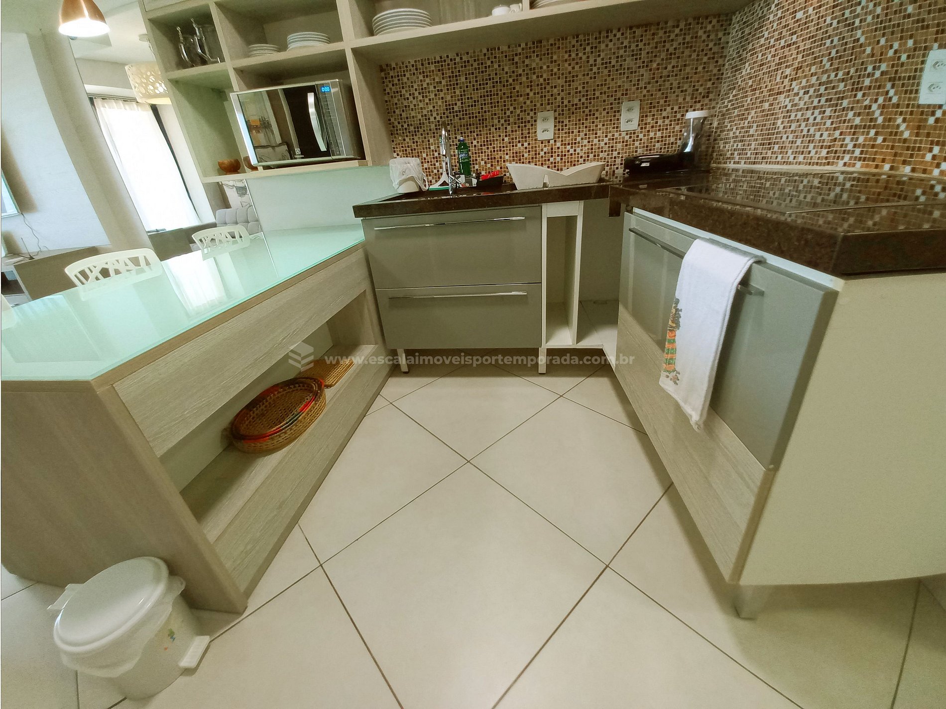 O imóvel tem 2 quartos com cama casal e ar, sendo 1 suíte. 1 banheiro social. Sala com ar condicionado. Cozinha equipada.