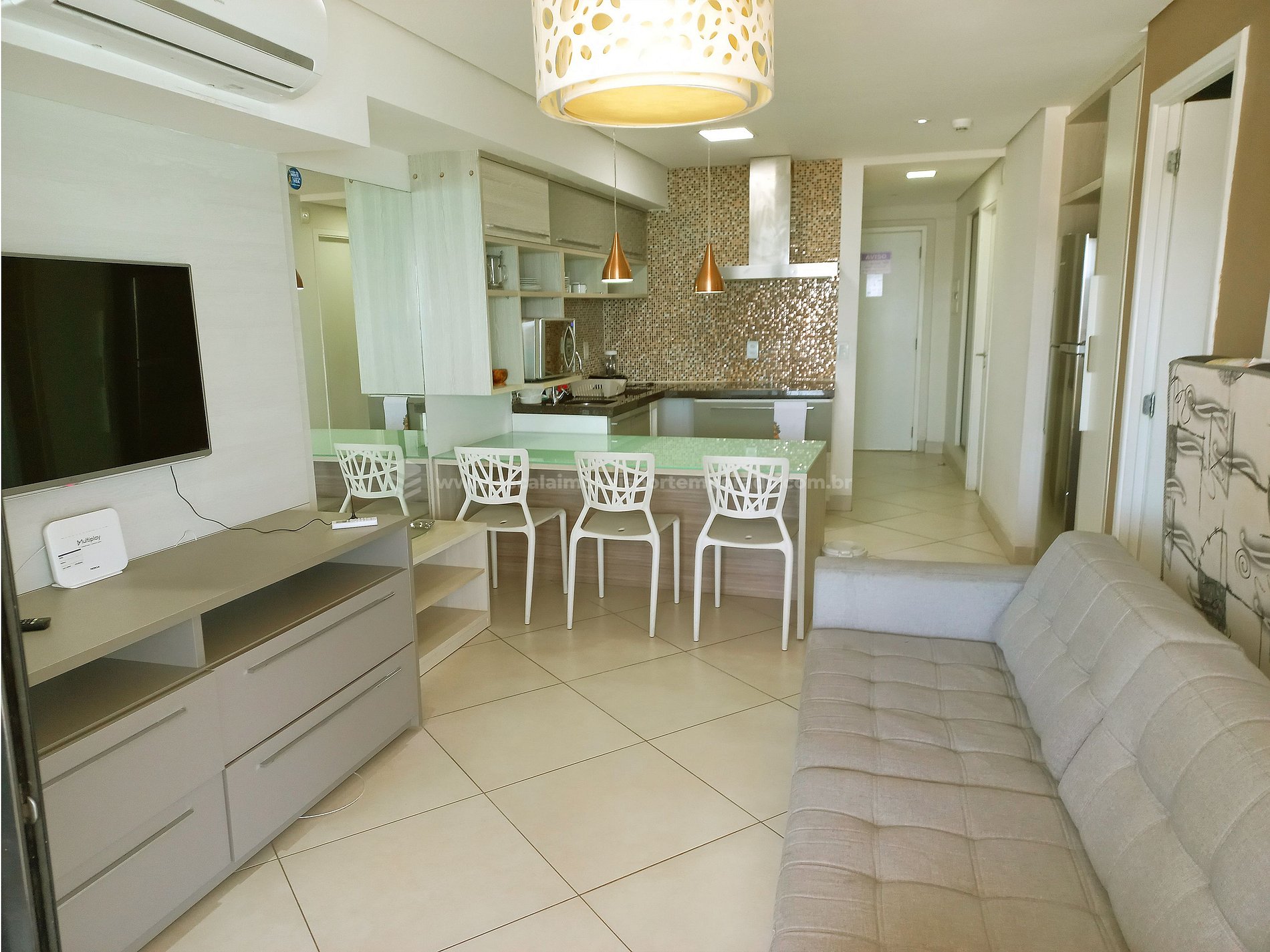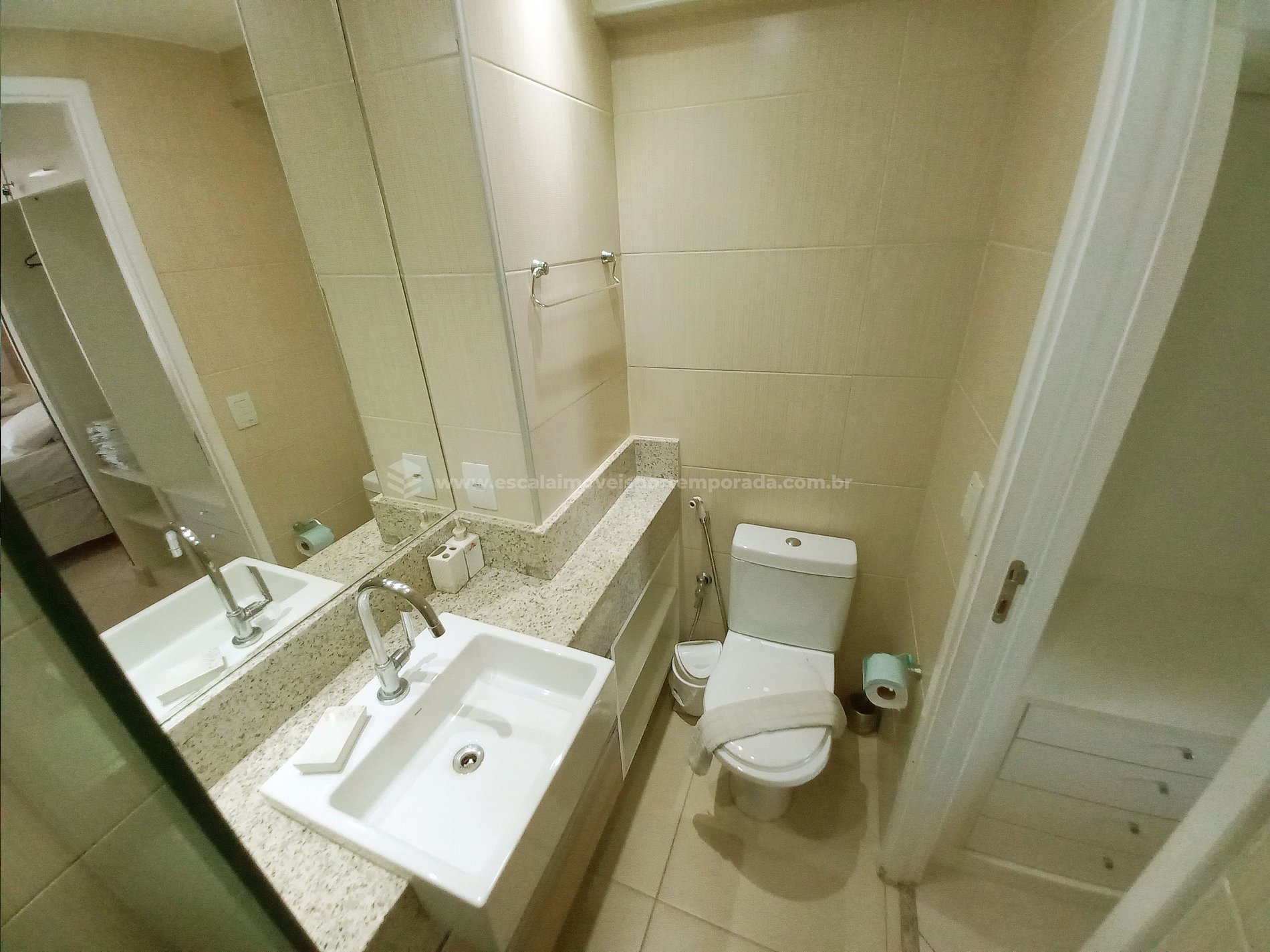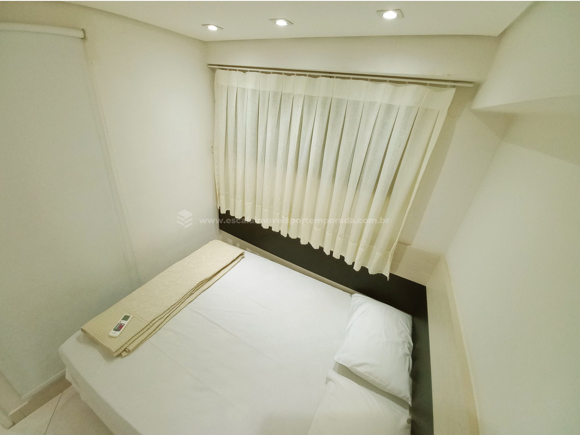 O imóvel tem 2 quartos com cama casal e ar, sendo 1 suíte. 1 banheiro social. Sala com ar condicionado. Cozinha equipada.