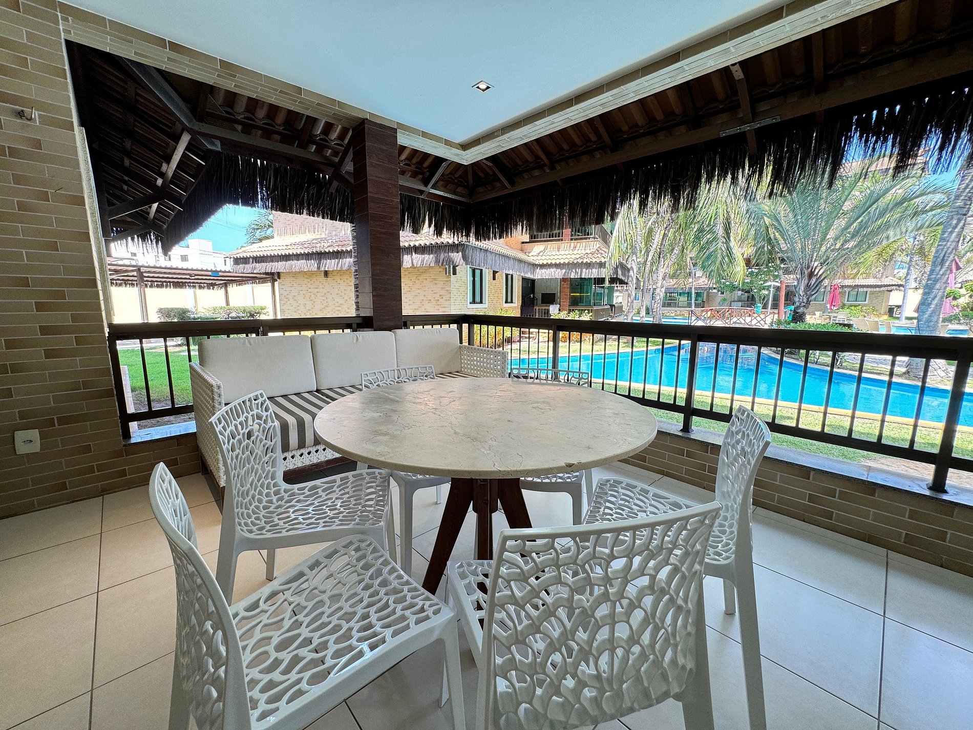 Apartamento en planta baja ideal para familias y grupos. Cuenta con 4 dormitorios con aire: 1 suite con cama doble, 1 suite con litera, 1 dormitorio con litera y 1 suite con litera. Sala de estar con aire y TV, medio baño, cocina completa y terraza con parrilla. Wi-Fi incluido. Ubicado en Parque das Ilhas, cerca del Beach Park, con servicios estilo resort y fácil acceso a Porto das Dunas.
