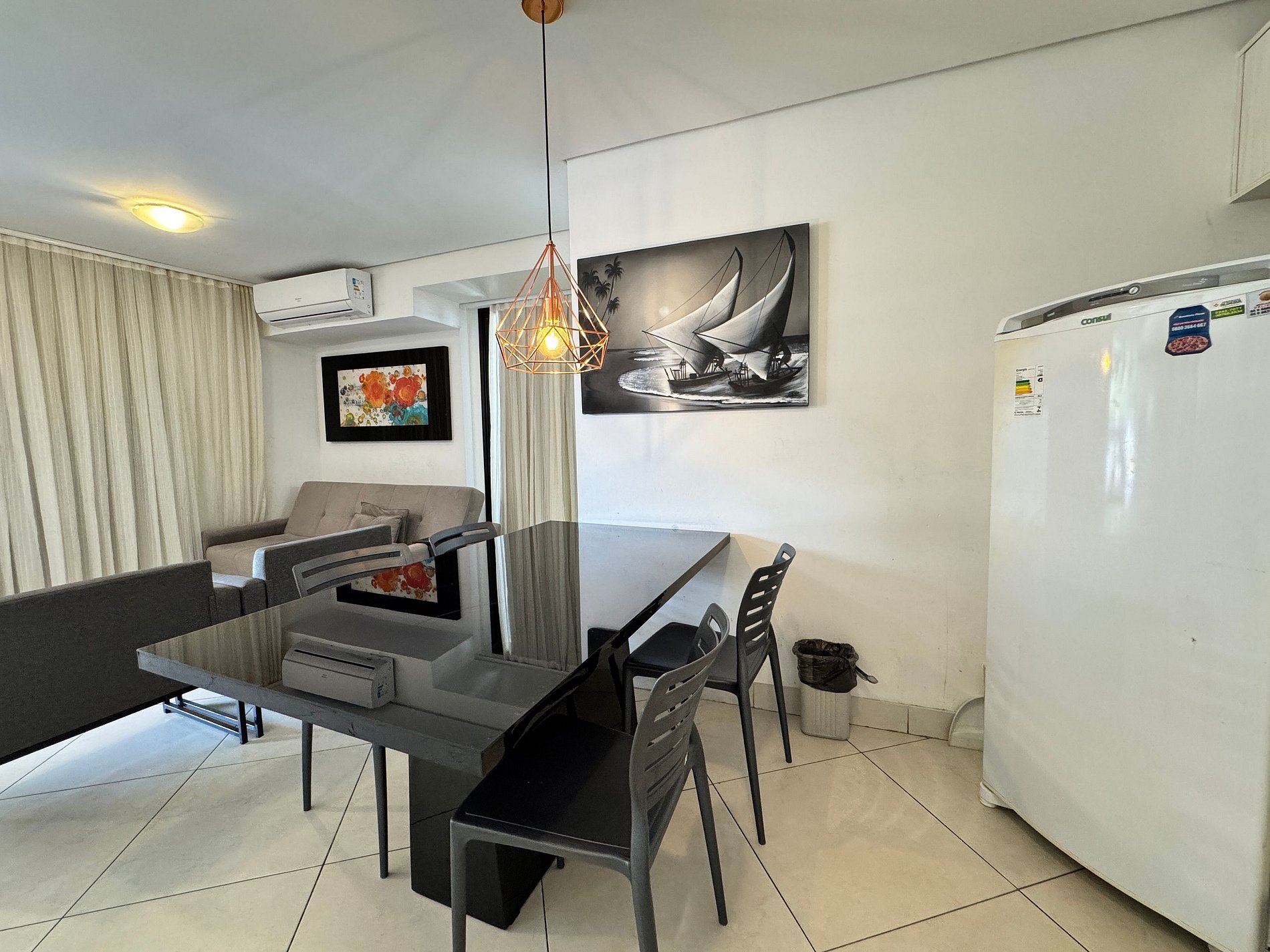 Este apartamento é o 211 da torre Diamond, cuja entrada fica na Av Abolição 2311. A unidade tem 1 suíte com cama casal e ar, segundo quarto com cama casal e ar, banheiro social, sala com sofá cama e ar. Acomoda confortavelmente até 06 adultos. E são permitidas 02 crianças até 12 anos. Disponibilizamos wifi cortesia. Cozinha equipada com fogão cooktop, geladeira, microondas, cafeteira, sanduicheira, liquidificador, panelas, pratos e talheres. Armários na sala, cozinha, banheiros e quartos. Linda vista para a praia do Meireles. 1 vaga gratuita. Enxoval branco padrão hotelaria. O condomínio tem recepção 24h, local onde ocorre o check-in expresso.