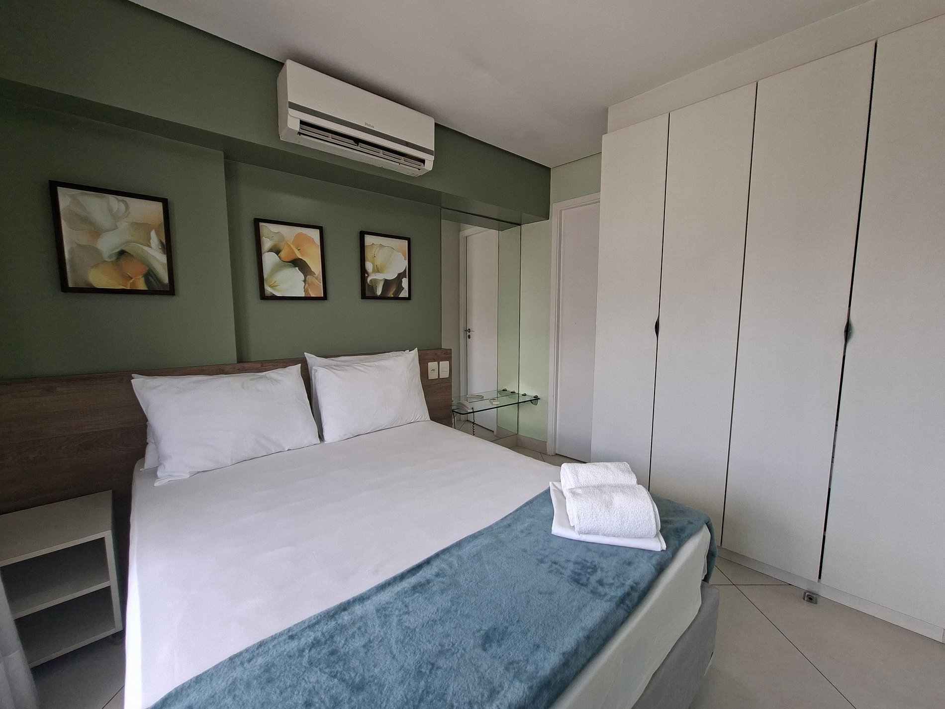 Trabalhamos com enxoval padrão de hotel, na cor branca.