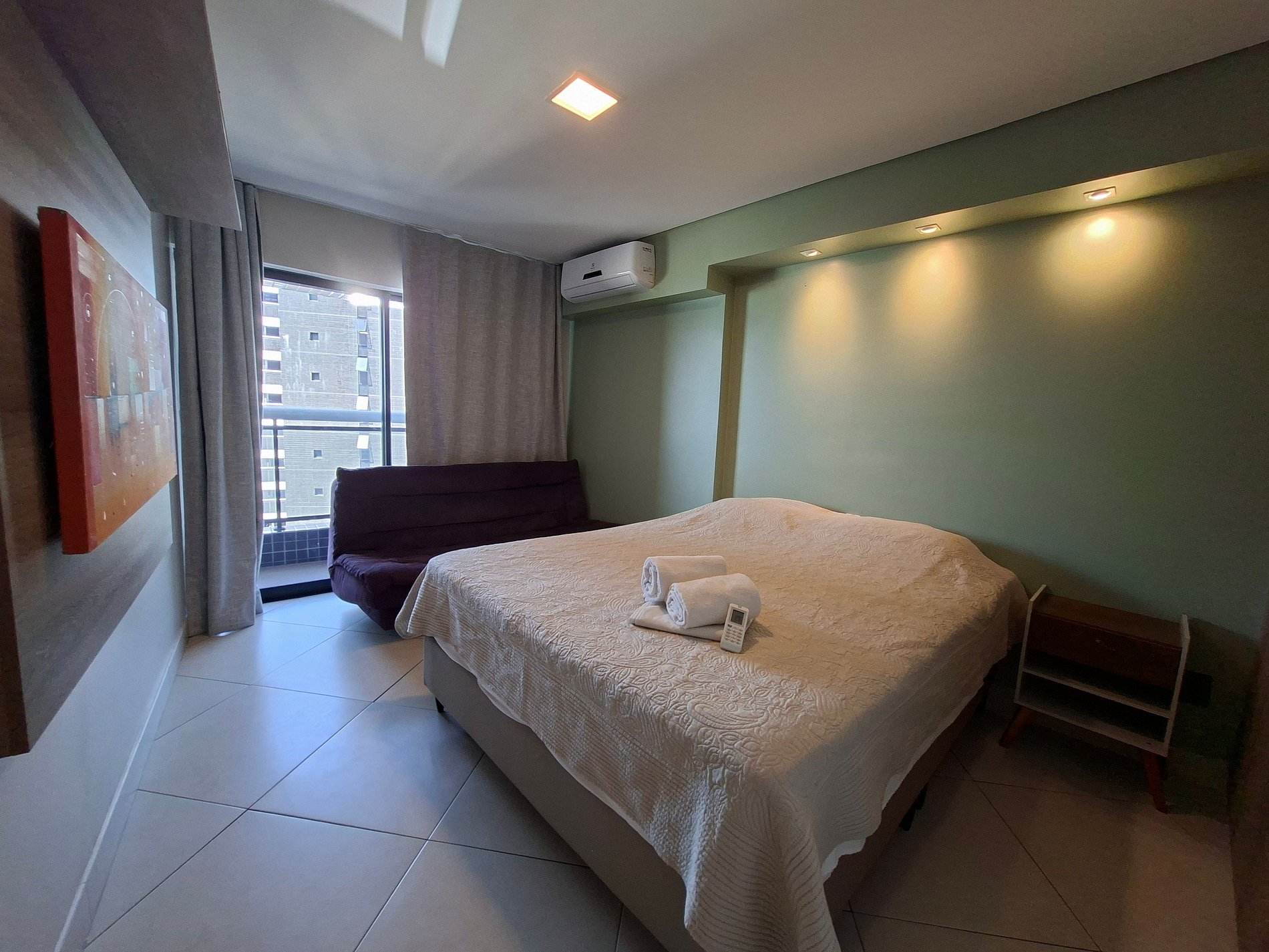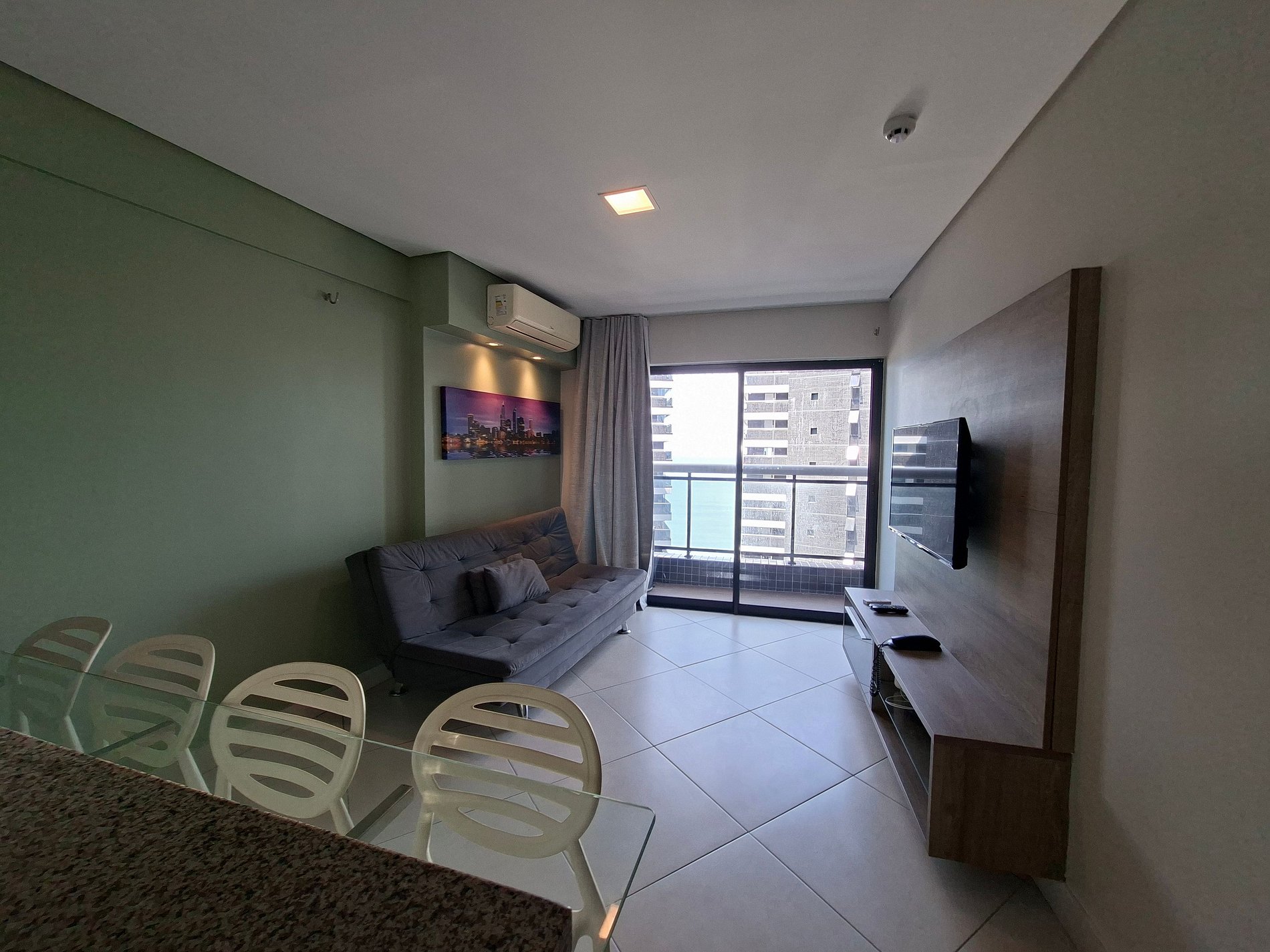 Balcón Privado con Vista a la Ciudad: Relájese y disfrute del paisaje urbano de Fortaleza desde la comodidad de su balcón.