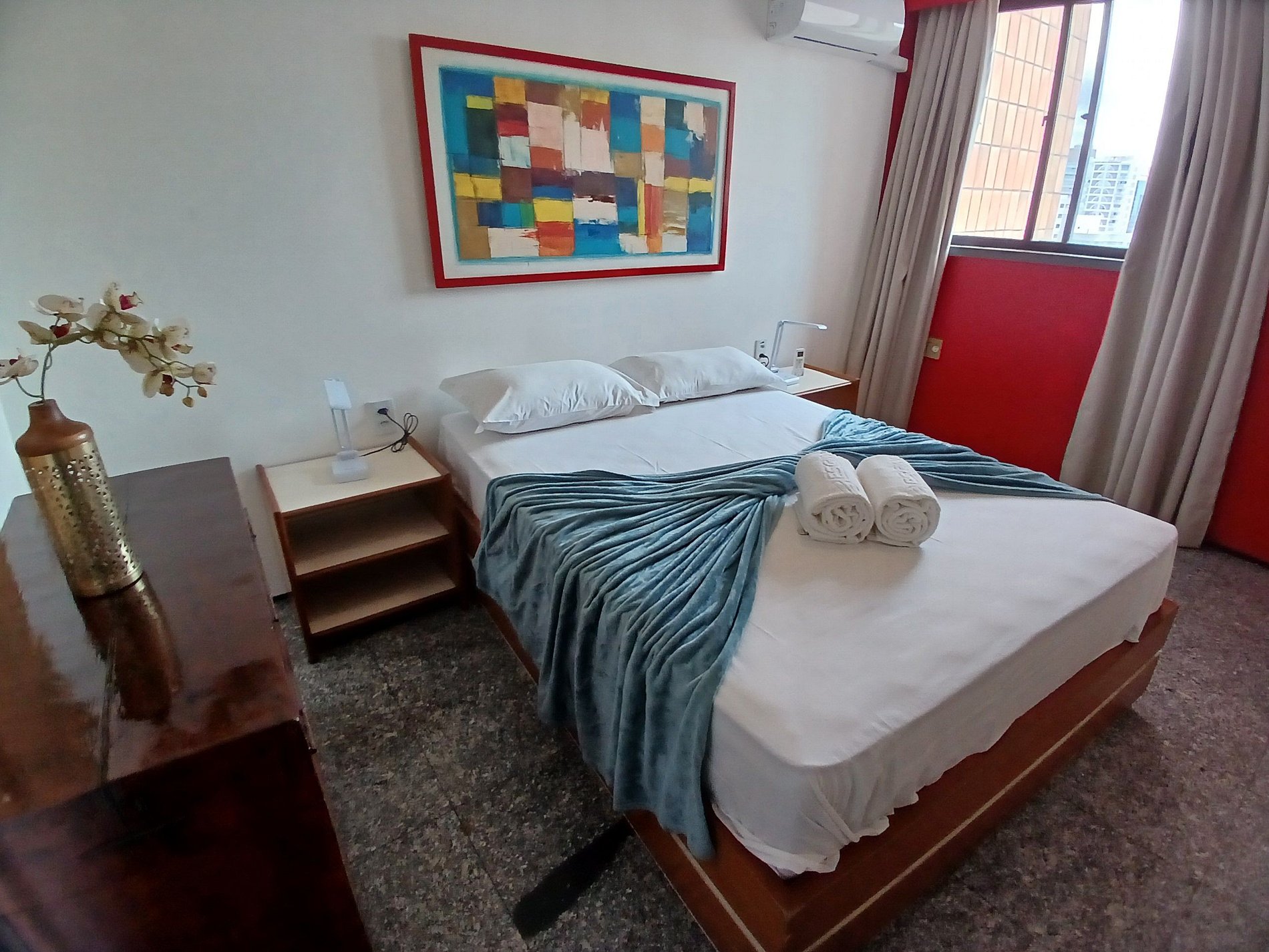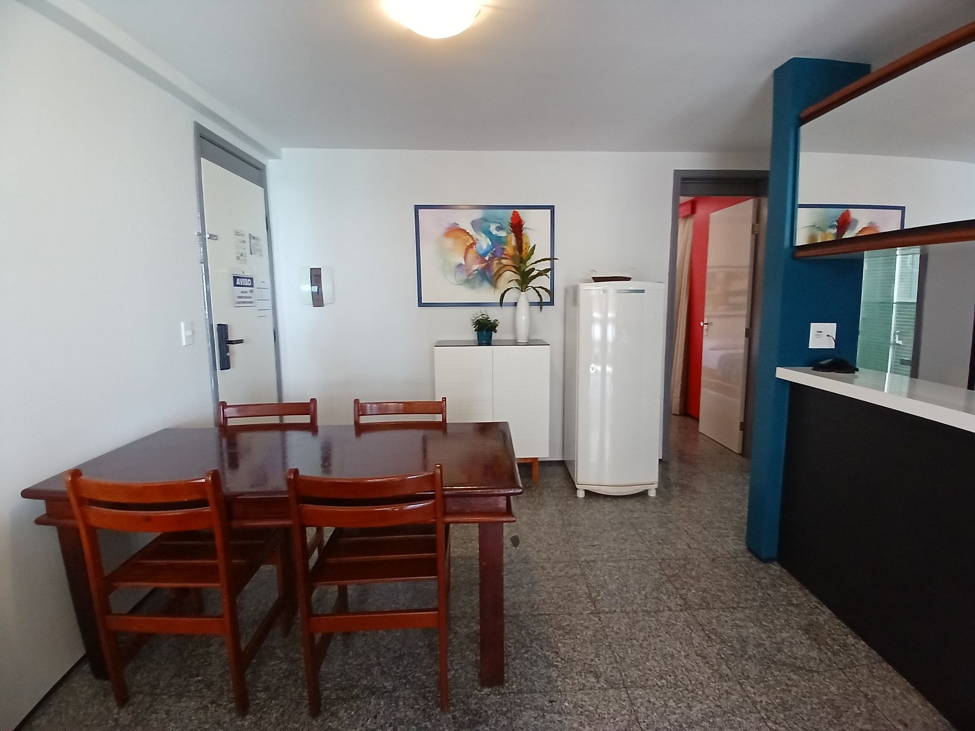 Flat Atlântico — a solo 50 m de la Playa de Meireles, cerca del Mercado de Artesanía y de los mejores bares y restaurantes de Fortaleza. El apartamento cuenta con aire acondicionado, TV, minibar, microondas, balcón y cocina compacta. El edificio ofrece recepción 24 h, Wi-Fi y estacionamiento gratuito (plazas rotativas). Ideal para quienes buscan comodidad, practicidad y una excelente ubicación.