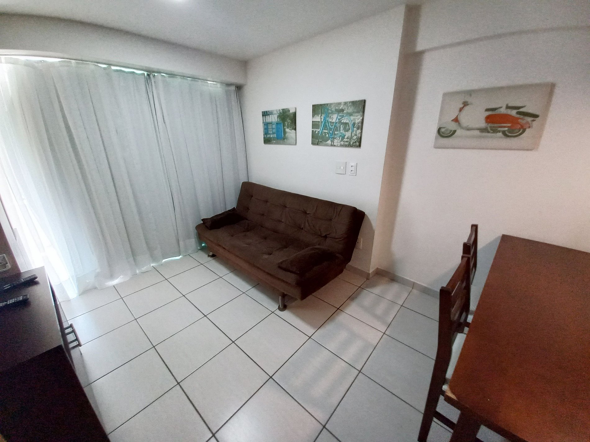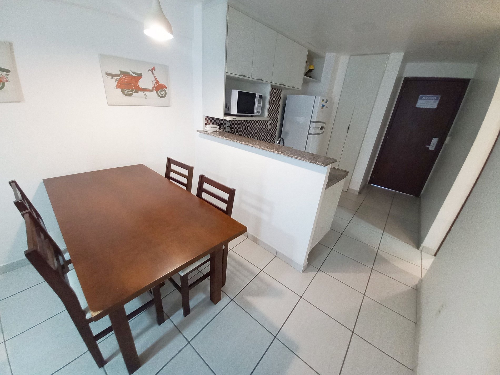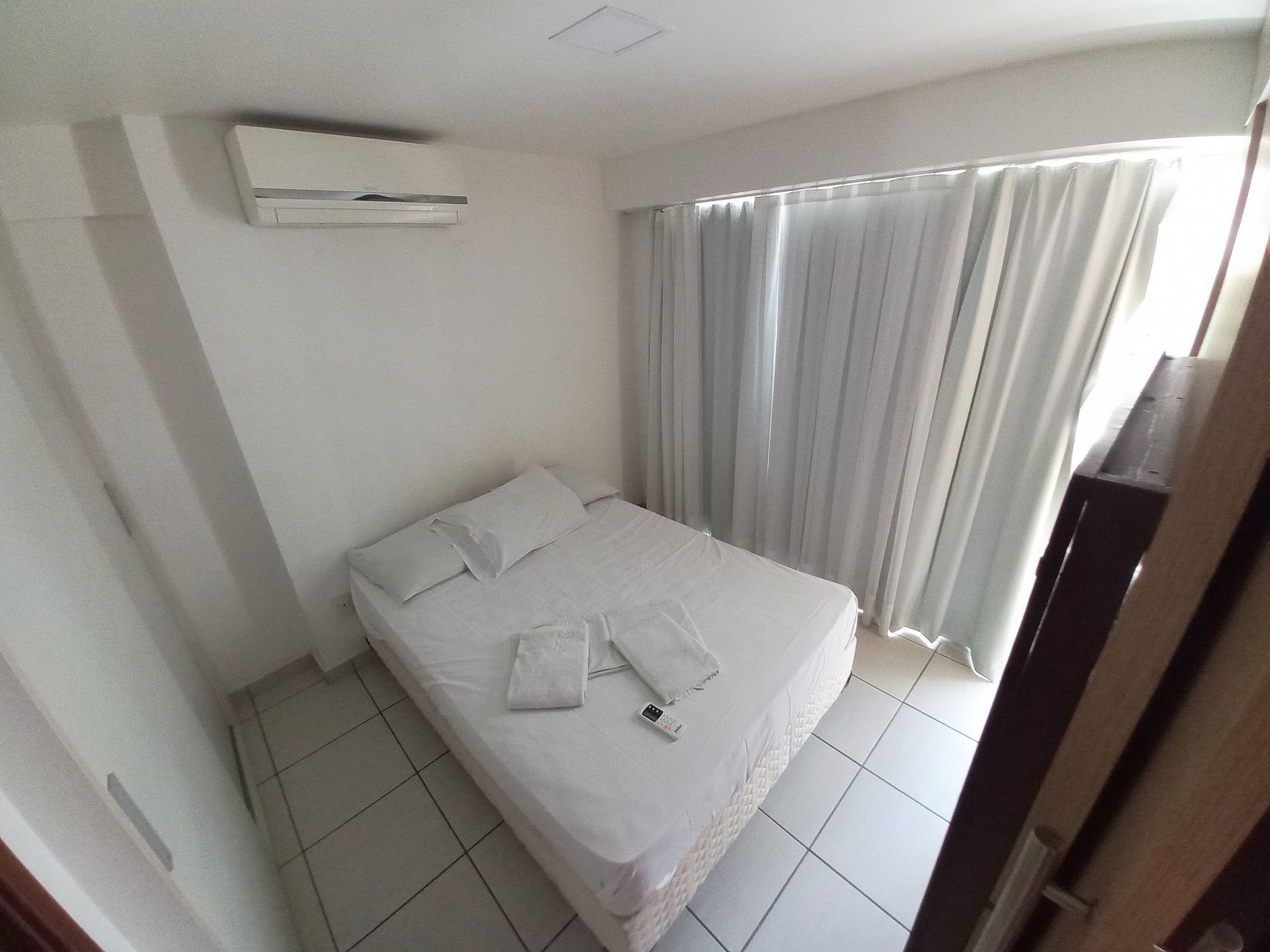 Apartamento 100% mobiliado, 2 quartos com ar condicionado, sendo 1 suíte com cama casal.