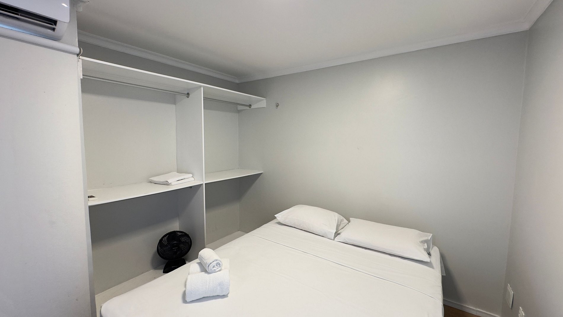 Este flat exclusivo en Iracema Residence es ideal para quienes buscan comodidad y privacidad frente al mar. Compacto pero totalmente equipado, ofrece una cocina funcional, sala acogedora con sofá cama y un balcón con vistas inolvidables al océano, perfecto para cenar con el mar como escenario. El dormitorio cuenta con cama doble, aire acondicionado y baño privado, garantizando una estadía confortable.