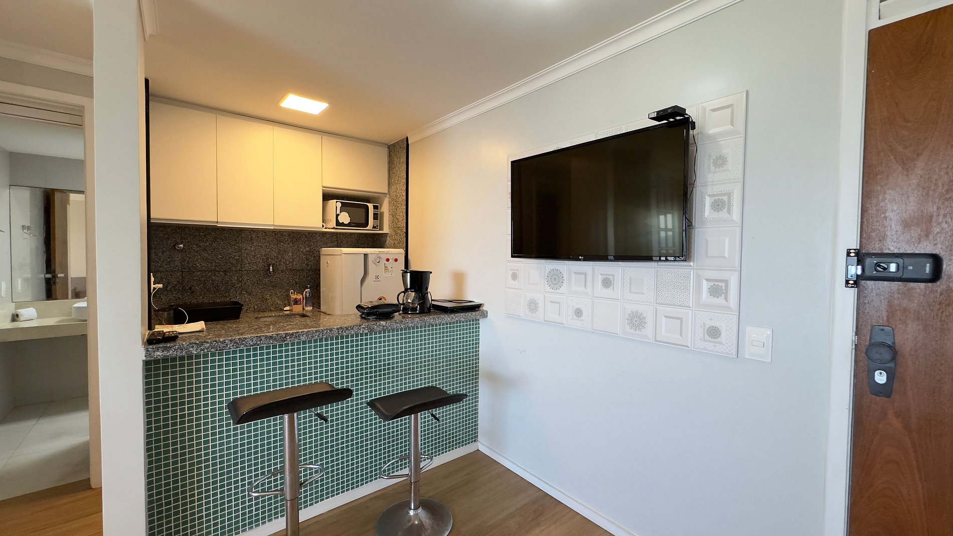 Los huéspedes tendrán acceso a todas las áreas privadas del flat: dormitorio, sala de estar, cocina equipada, baño y balcón con vista al mar. En el condominio podrán disfrutar de la piscina, recepción 24h, restaurante y gimnasio (este último con costo adicional). Algunas áreas comunes pueden tener restricciones de uso según las normas internas del condominio.