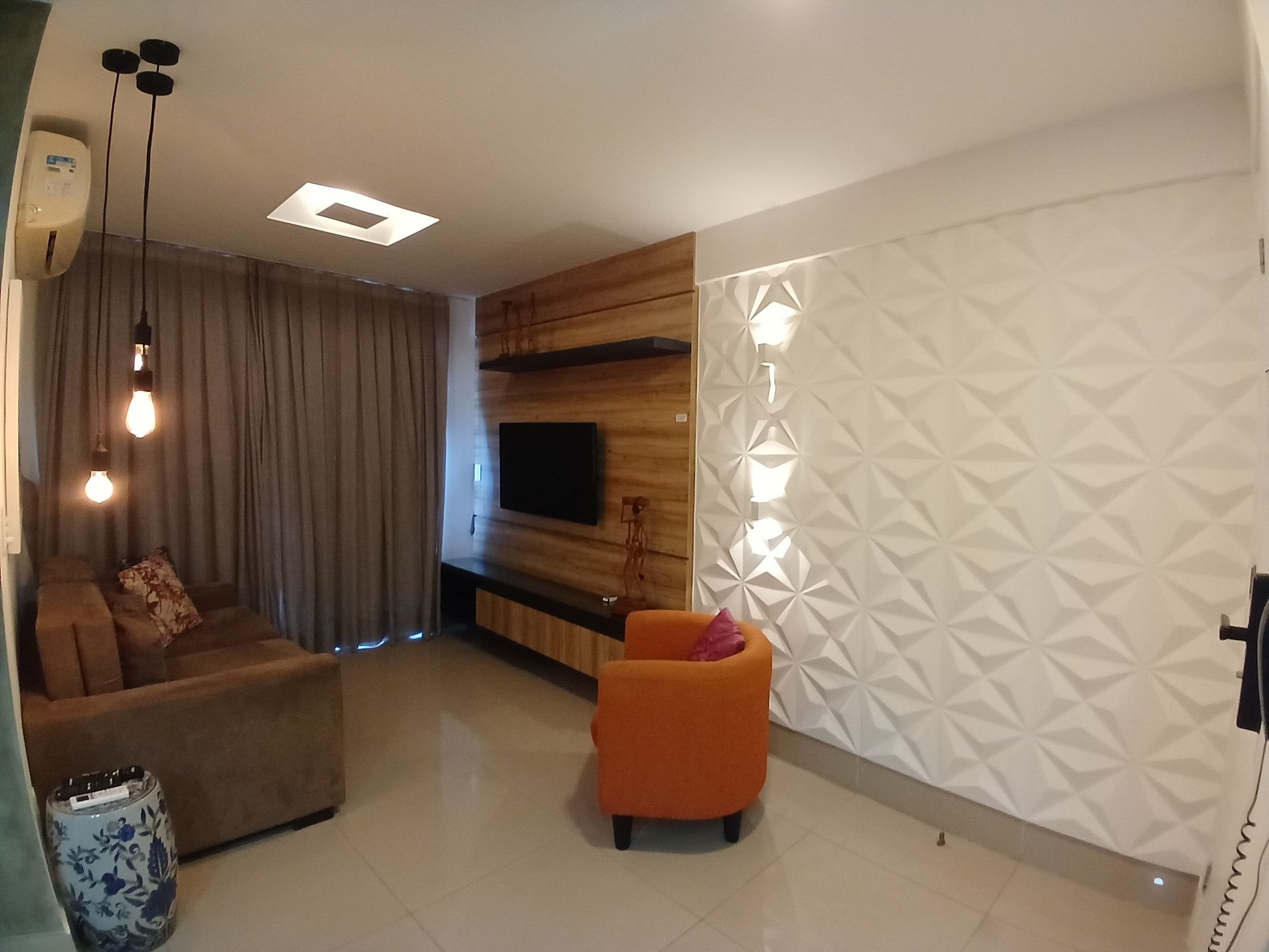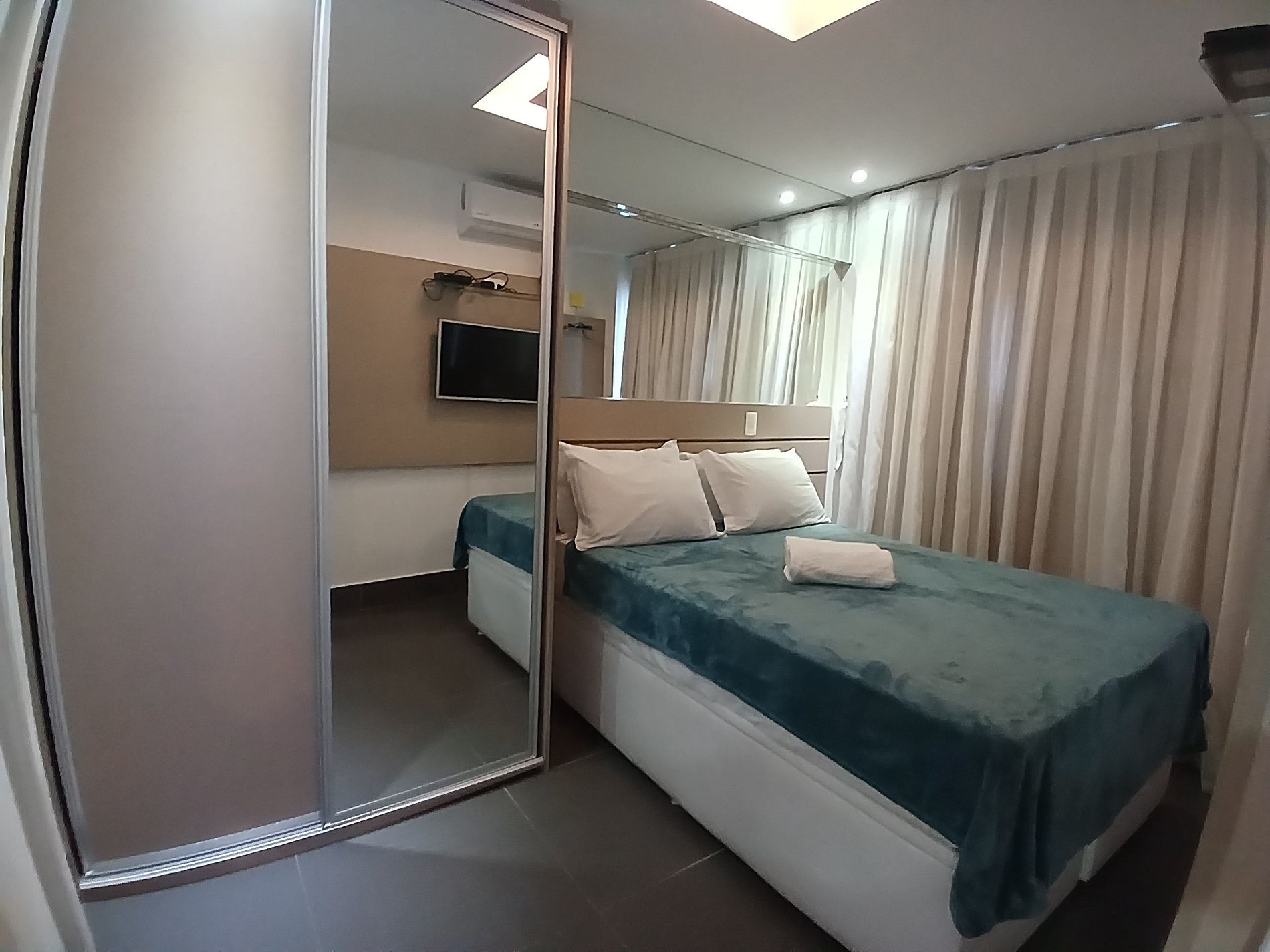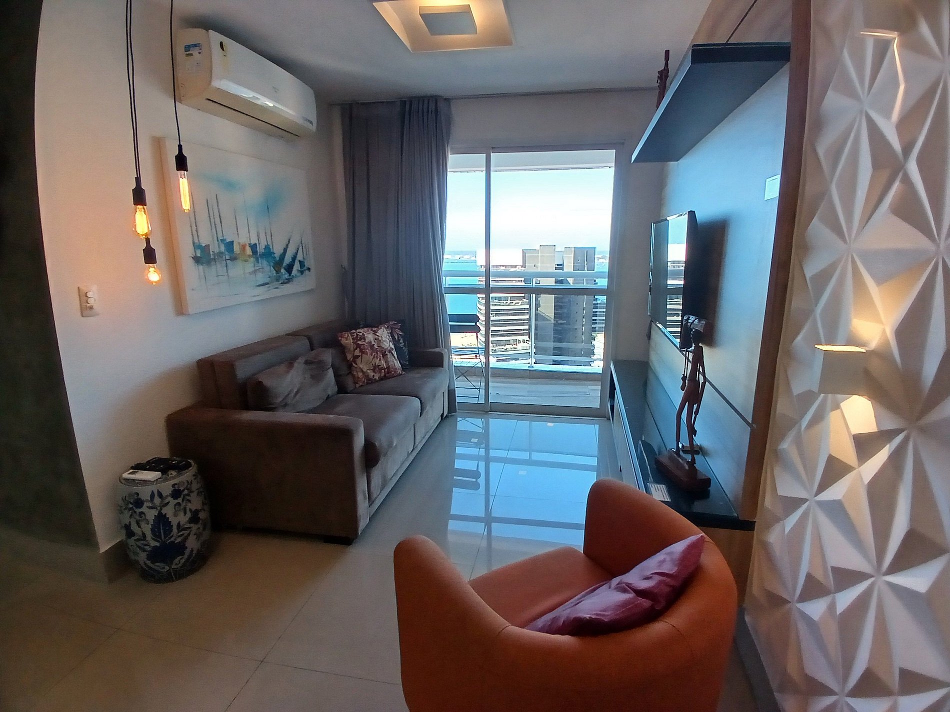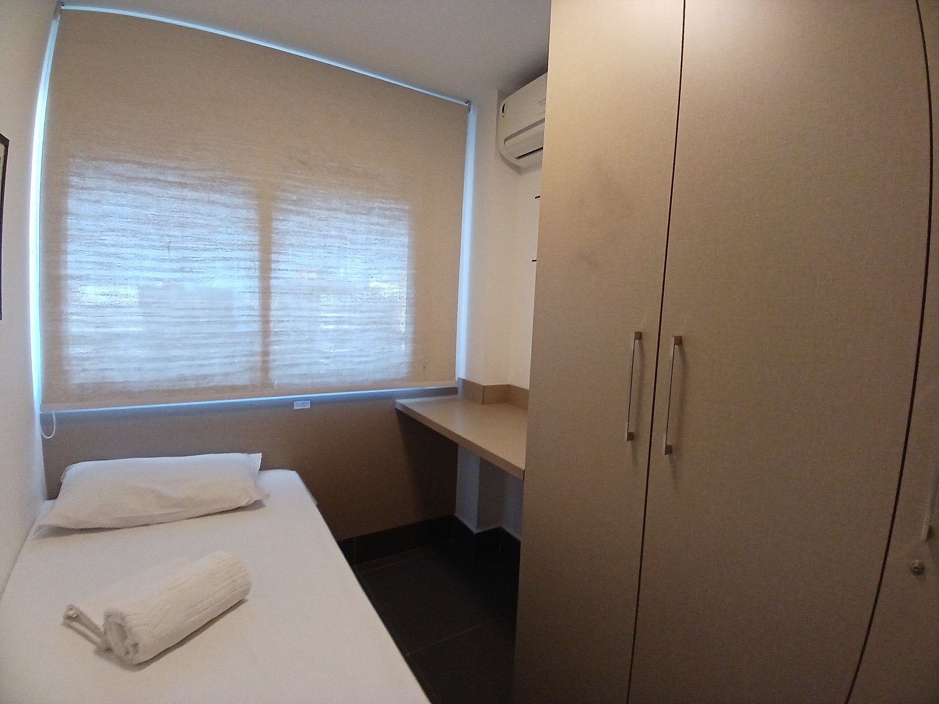 Ficamos no periodo de 5 dias. Checkin extremante rigoroso c horario, liberou apenas 15 minutos antes p entrar o que nos salvou foi que portaria nos liberou p entrar e ficar no hall, estava chovendo. Quanto ao apto fiel as fotos a localizaçao é excelente, vista maravilhosa da sacada do apto. Apto estava com avarias (vidro quebrado do banheiro e porta do armario que ao abrir caia a porta tornando-se perigoso)
