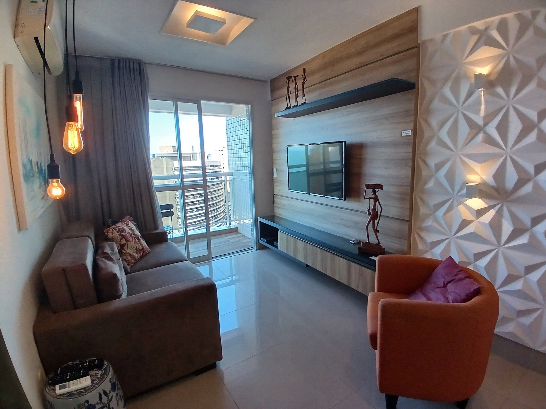 Do apartamento se tem uma vista incrível, da sala, e ambos quartos, a sacada então nem se fala. Na cozinha há forno, micro, torradeira, liquidificador e uma variedade de utensílios, os 2 quartos possuem ar condicionado e variados tipos de iluminaçao a sala também. A porta c senha também é um diferencial pois n precisa se preocupar c perder chave ou catão. A piscina é grande e limpa e possui uma raia p praticar natação. Possui tv na sala e num quarto. O predio possui 3 elevadores q facilitam bastante p n perder tempo na espera. O edificio possui lavanderia propria (paga), e uma pequena academia.