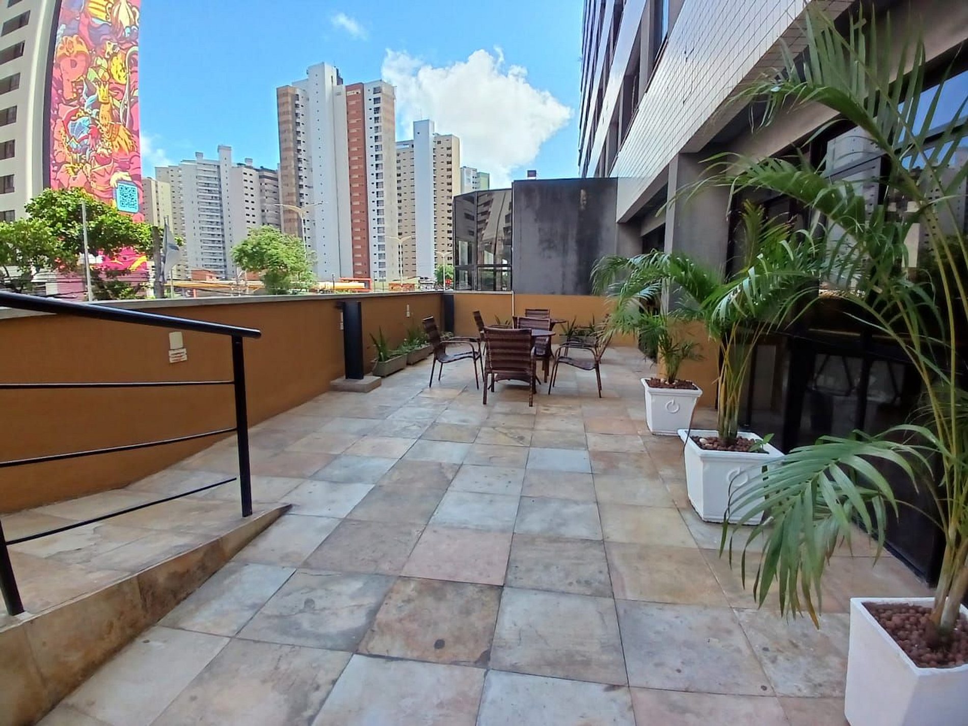 Condomínio tem restaurante (café não incluso), piscina, academia e recepção 24h.