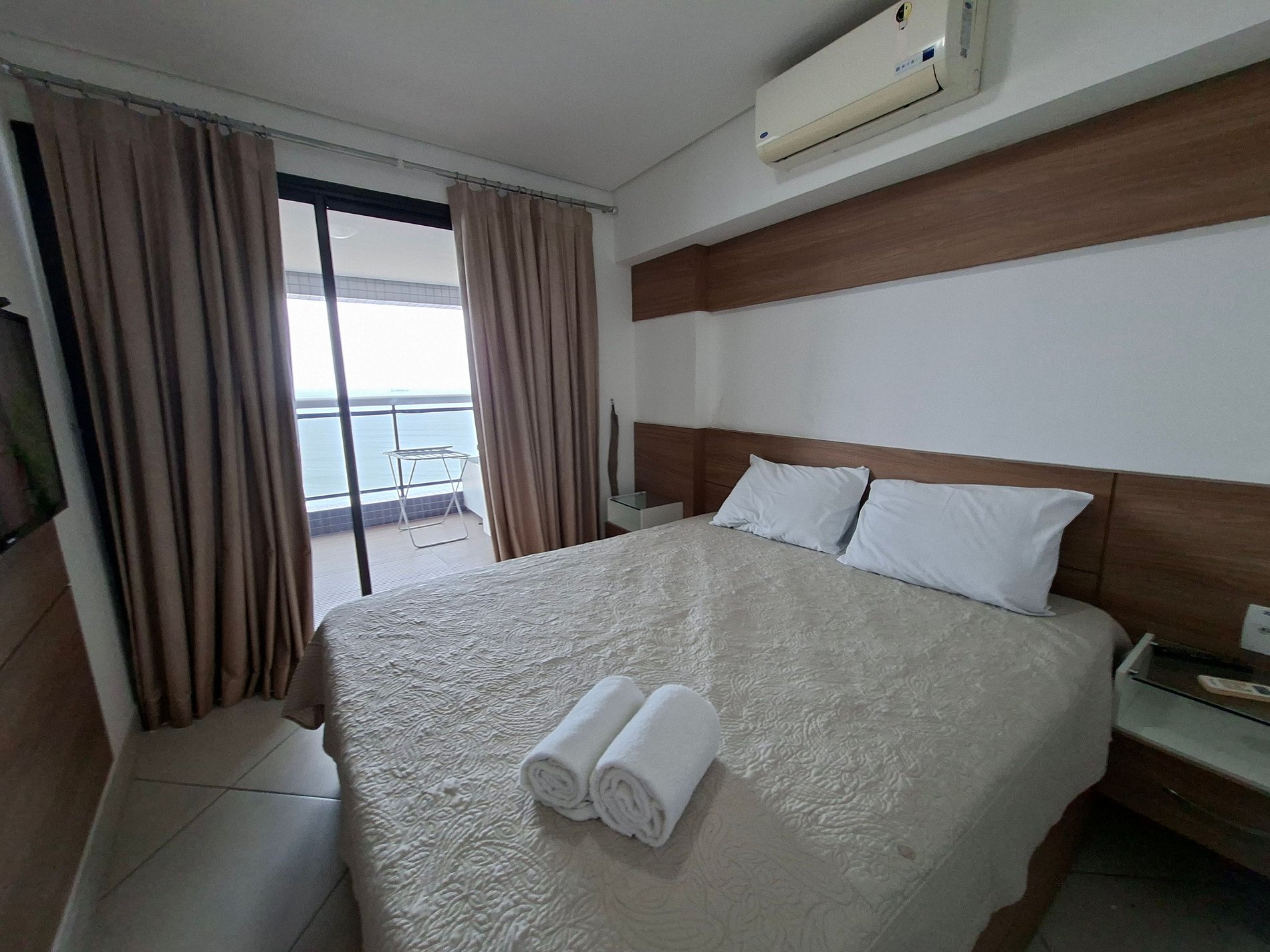 Apartamento bem ventilado e iluminado, localizado frente mar, com vista privilegiada da varanda. Todos os quartos e a sala possuem ar condicionado. O imóvel é totalmente mobiliado e equipado para estadias de curta temporada, oferecendo conforto e praticidade aos hóspedes. Roupa de cama e banho disponíveis conforme informado no anúncio.
