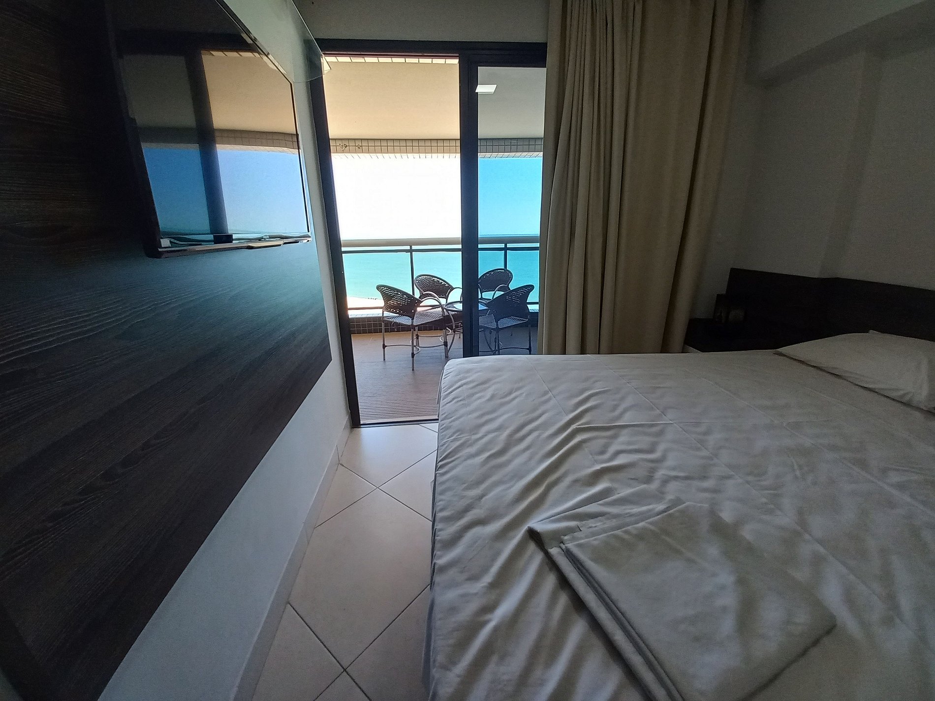 O apartamento é totalmente mobiliado e equipado para oferecer conforto durante sua estadia. Dispõe de ar-condicionado nos quartos, TV, Wi-Fi, cozinha americana completa com geladeira, fogão, micro-ondas e utensílios, além de área de serviço com máquina de lavar. Sala de estar integrada à varanda com bela vista para o mar. Inclui roupas de cama e toalhas.
