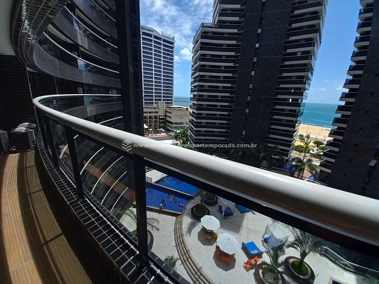 Apartamento alto padrão, 2 quartos, sala e cozinha, 100% mobiliado com móveis projetados, TV, utensílios domésticos, localização privilegiada no melhor da Beira Mar em Fortaleza.