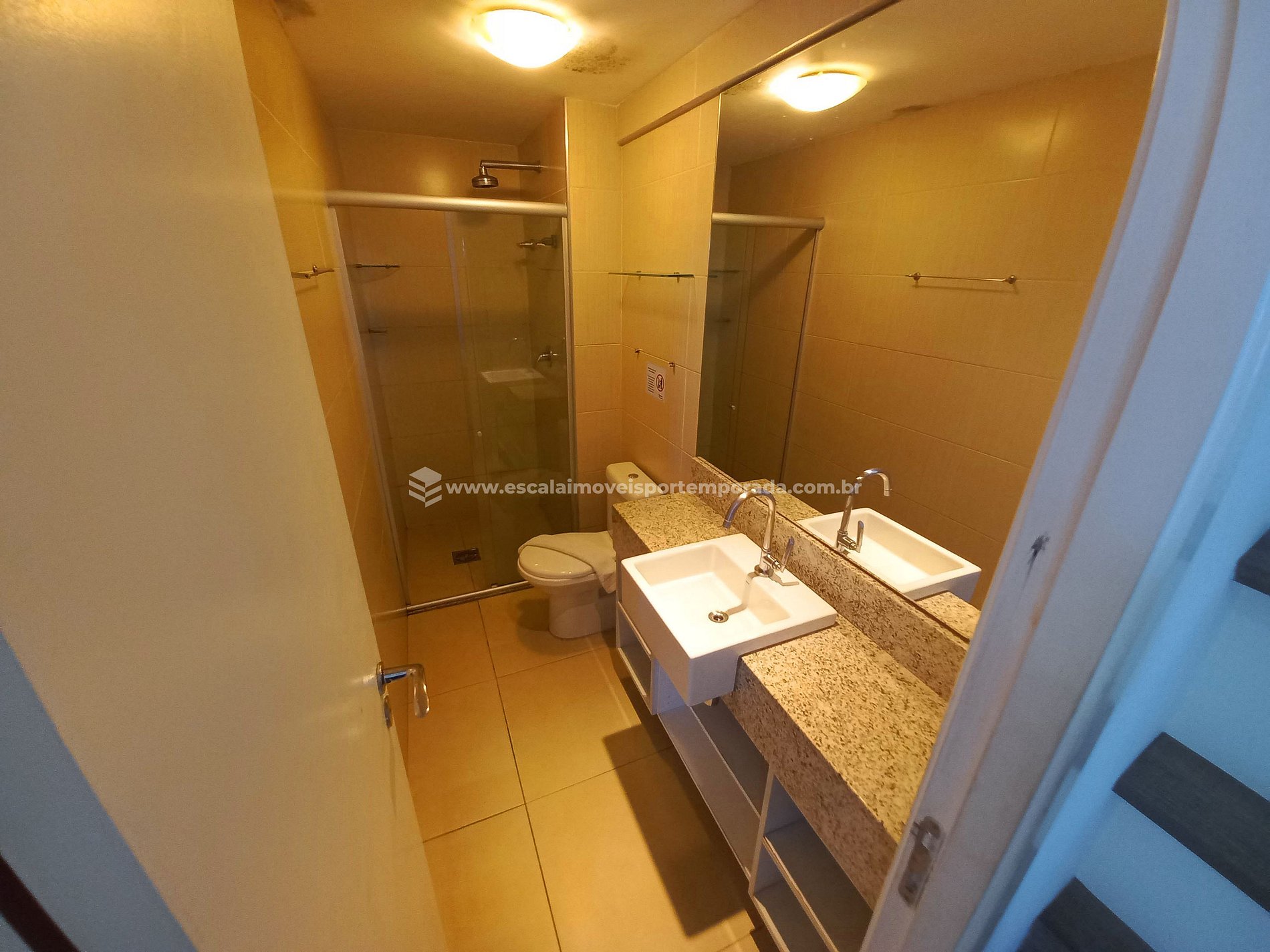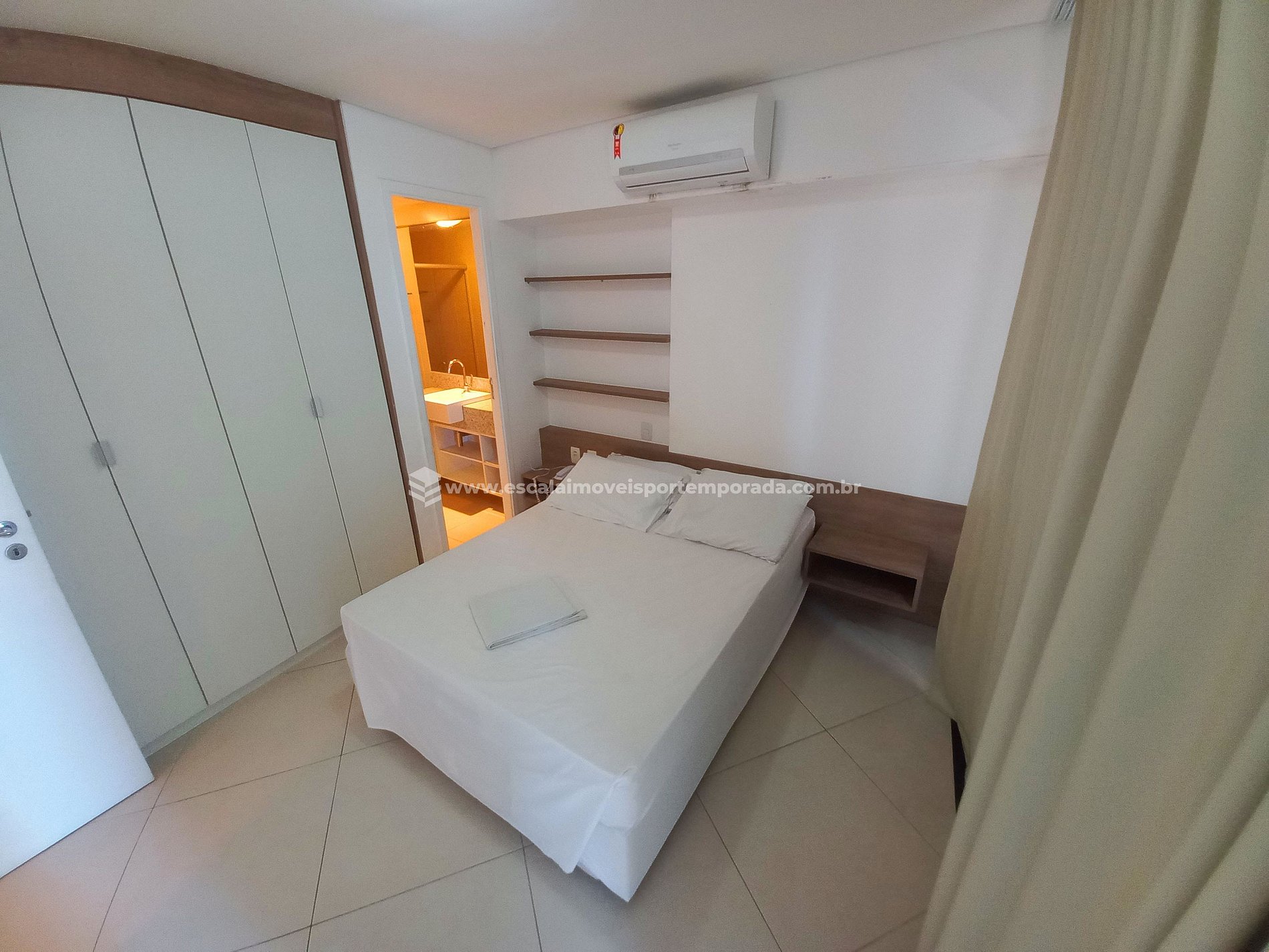 O apartamento tem uma suíte com cama casal e ar condicionado; quarto com cama casal e ar condicionado; sala com sofá cama e ar condicionado. Banheiro social. Cozinha compacta. Varanda com vista parcial mar. WiFi gratuito. 1 vaga de estacionamento.