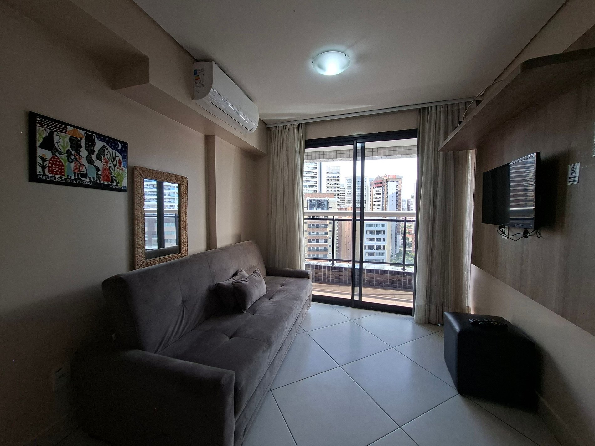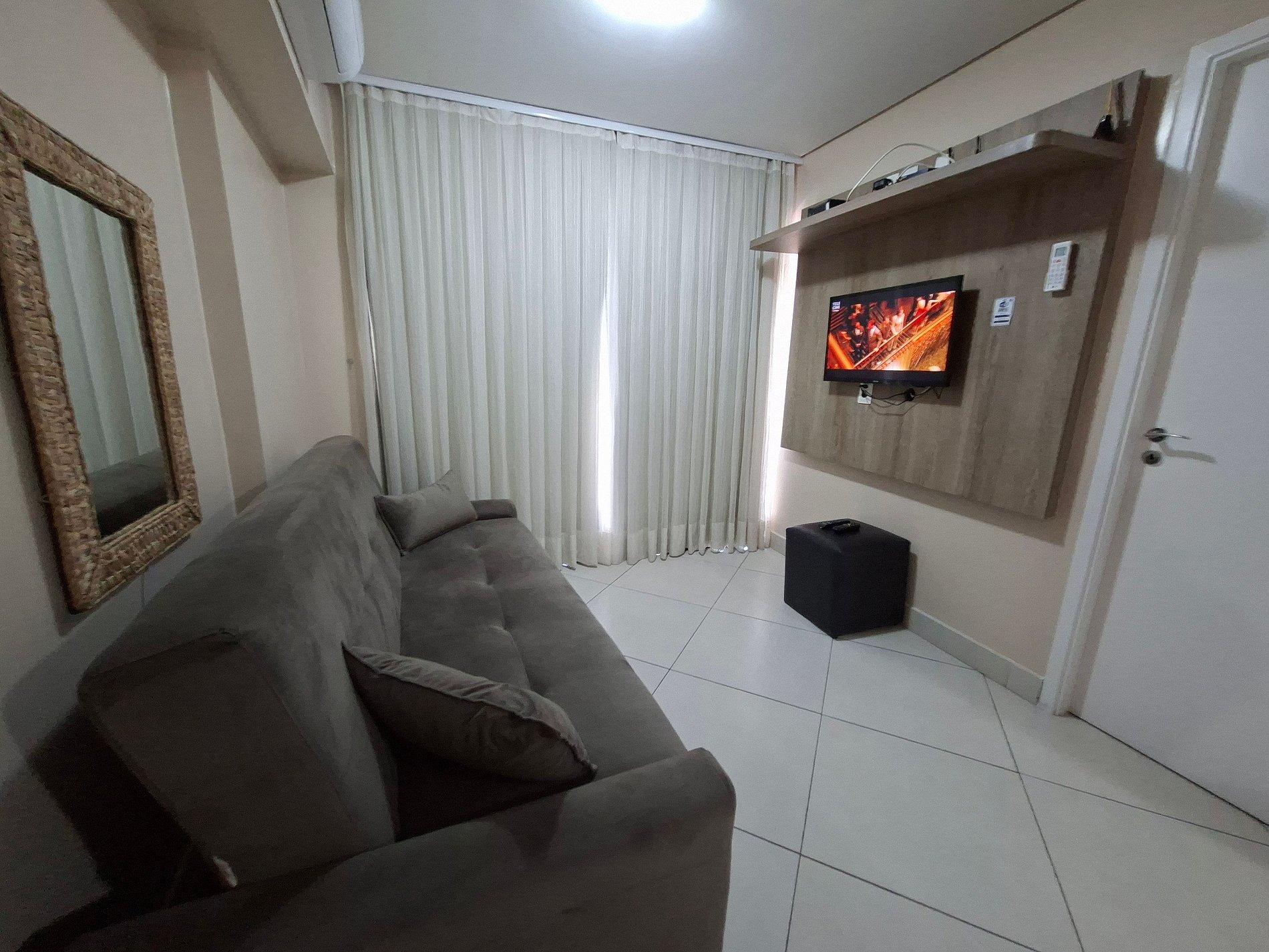Apartamento de 1 suíte no Landscape Beira Mar, em andar alto com vista cidade. Possui suíte com cama de casal e ar-condicionado, sala com sofá-cama e ar, TV, varanda e wifi. Cozinha equipada com filtro de água, geladeira, micro-ondas, cafeteira, liquidificador e sanduicheira. Inclui enxoval, cofre e 1 vaga de garagem. Ideal para quem busca conforto e excelente localização à beira-mar.