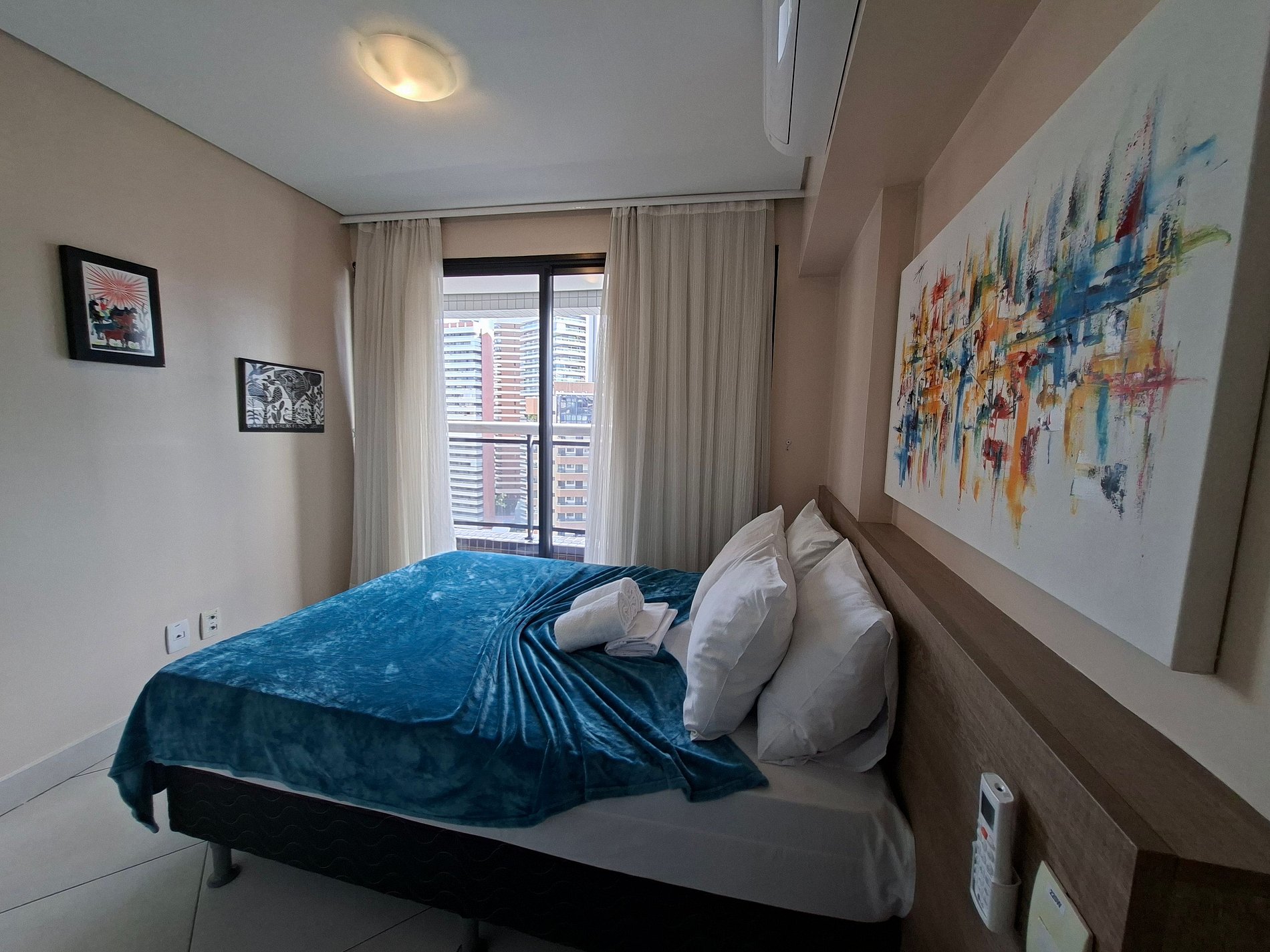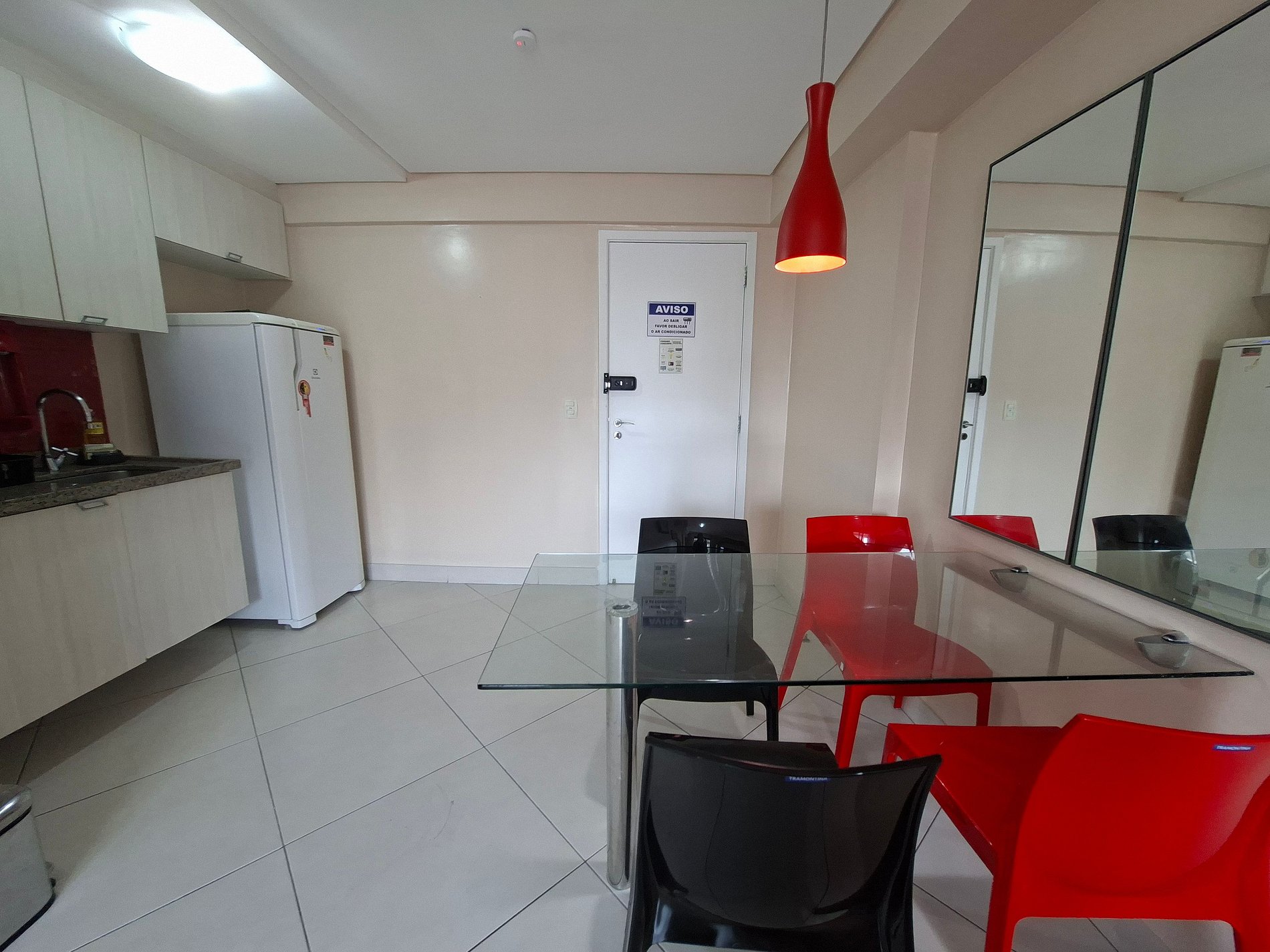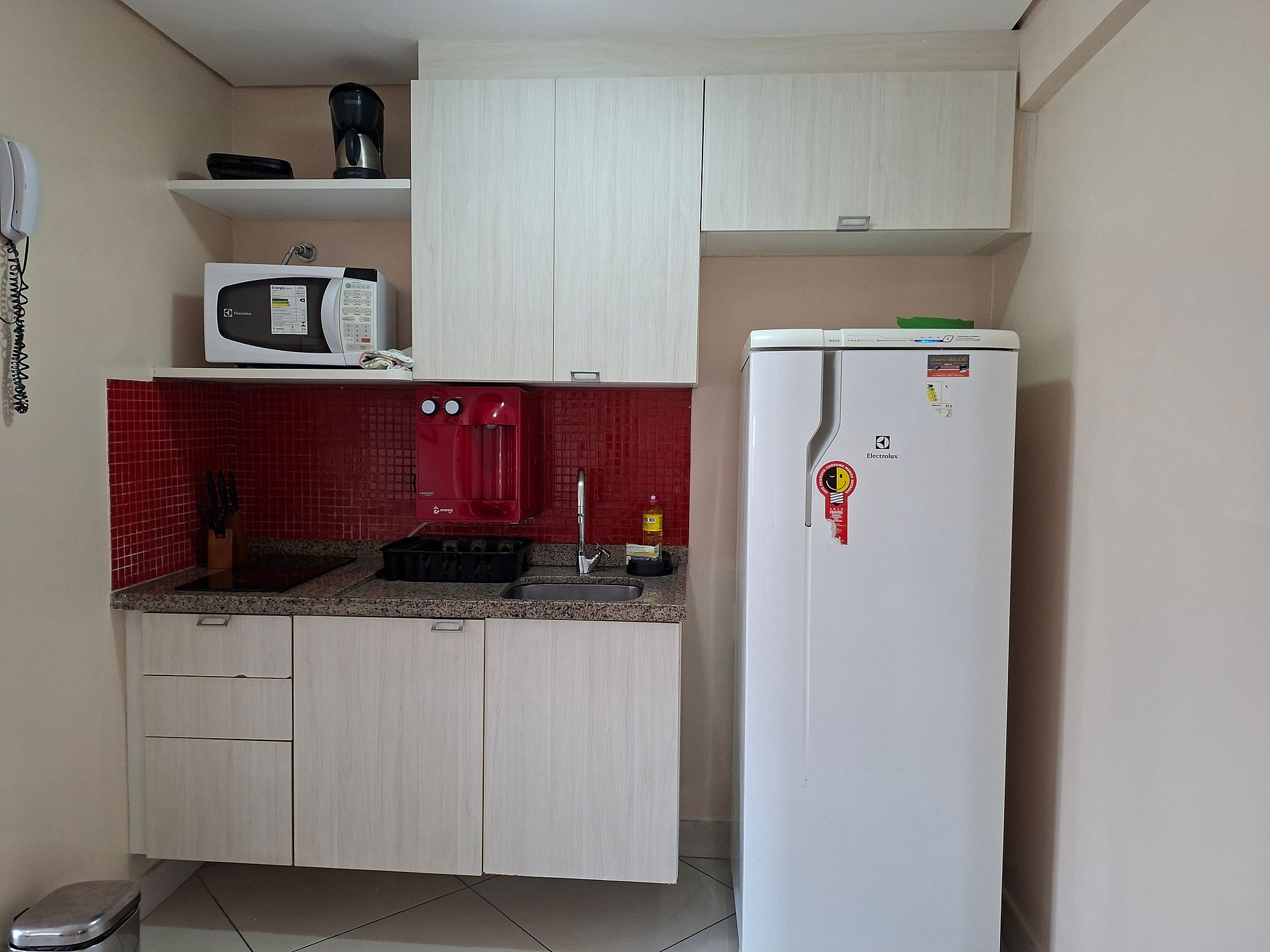 O apartamento está localizado em andar alto, proporcionando mais privacidade, ventilação e uma agradável vista da cidade. O espaço é totalmente equipado para estadias de curta e média duração, contando com enxoval completo de cama e banho, além de cozinha funcional com utensílios essenciais para o dia a dia.