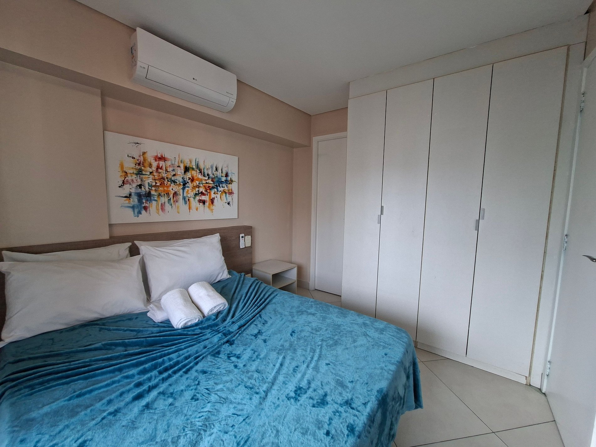 A unidade dispõe de ar-condicionado tanto na suíte quanto na sala, garantindo conforto em todos os ambientes. Também conta com cofre, oferecendo mais segurança para objetos pessoais durante a estadia.