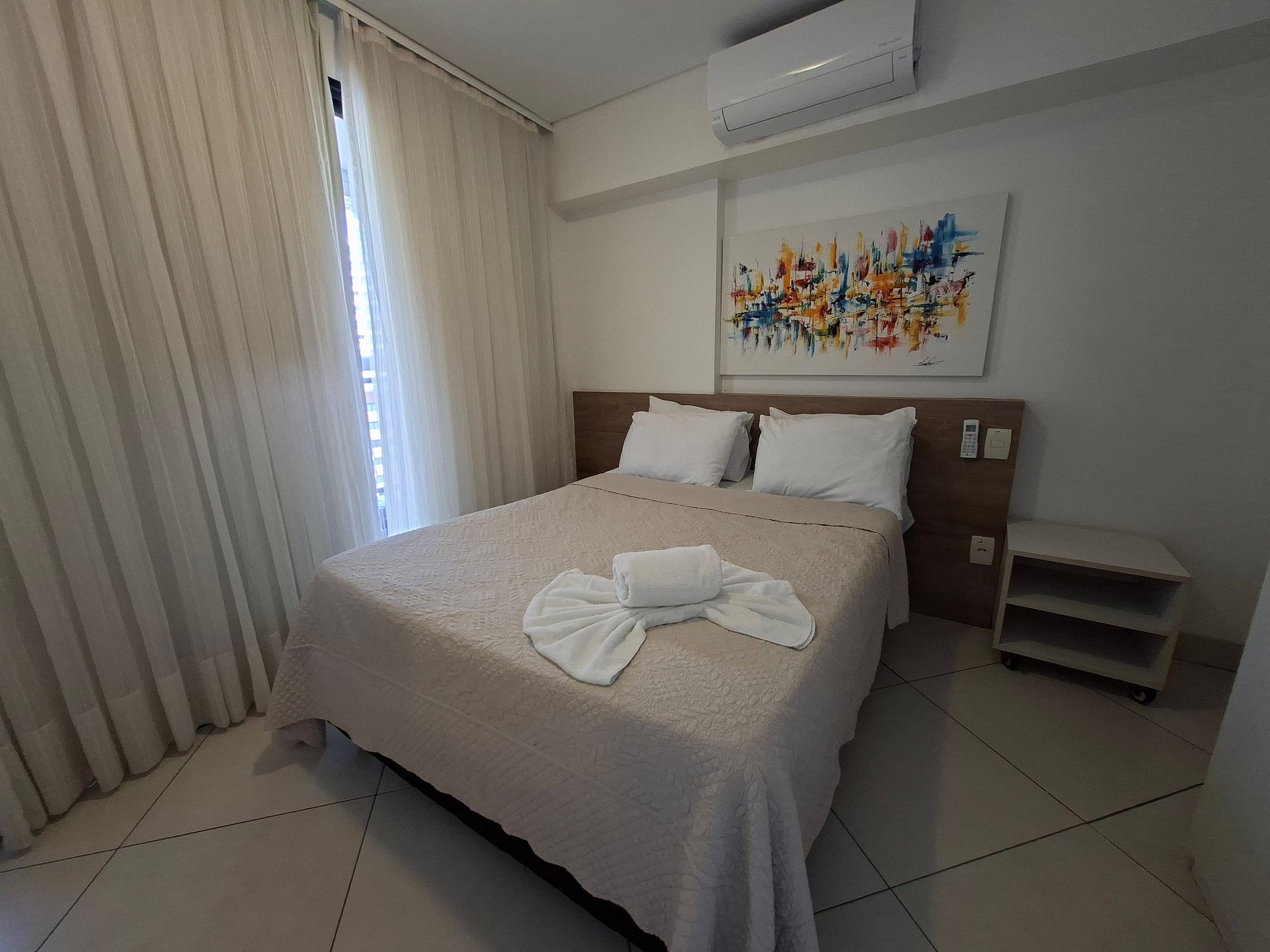 Apartamento de 1 suíte no Landscape Beira Mar, em andar alto com vista cidade. Possui suíte com cama de casal e ar-condicionado, sala com sofá-cama e ar, TV, varanda e wifi. Cozinha equipada com filtro de água, geladeira, micro-ondas, cafeteira, liquidificador e sanduicheira. Inclui enxoval, cofre e 1 vaga de garagem. Ideal para quem busca conforto e excelente localização à beira-mar.