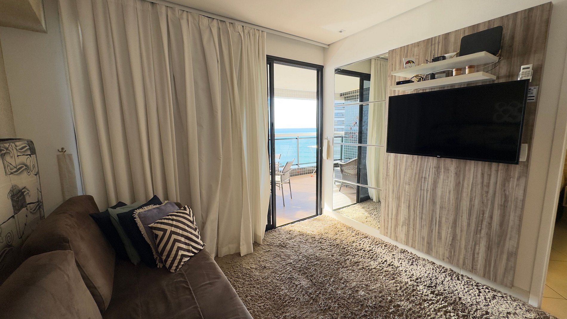 O que torna este espaço especial é a vista panorâmica para o mar de Fortaleza e o conforto de um apartamento totalmente mobiliado e decorado com bom gosto. Cada ambiente foi pensado para proporcionar conveniência, estilo e bem-estar, com ar-condicionado em todos os cômodos, cozinha completa e varanda espaçosa para relaxar ao som das ondas. Os hóspedes se sentem em casa — com o charme e a elegância de um resort à beira-mar.