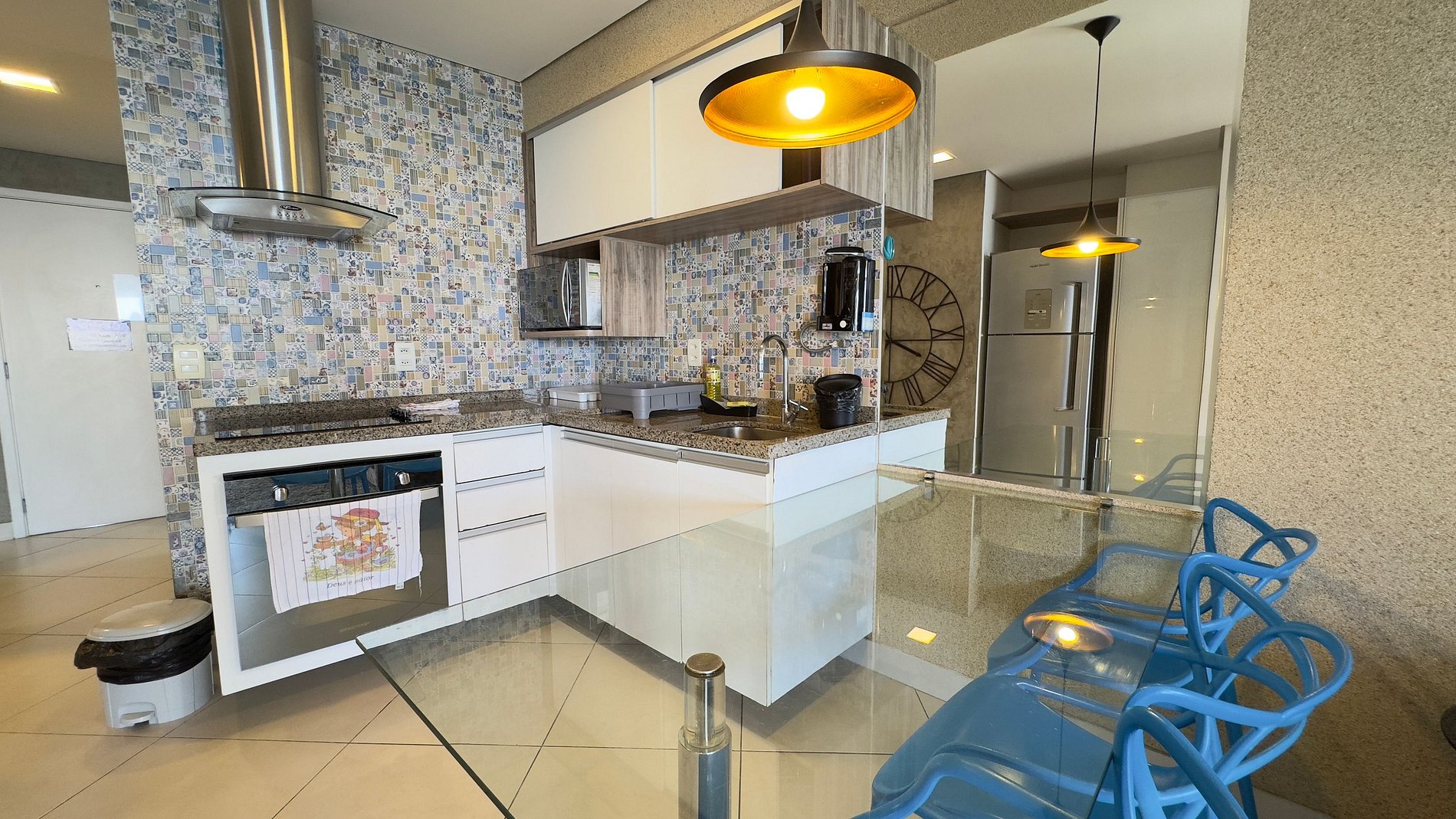Cozinha Gourmet: Uma cozinha moderna e totalmente equipada com tudo que você precisa para preparar suas refeições, tornando sua estadia ainda mais prática.