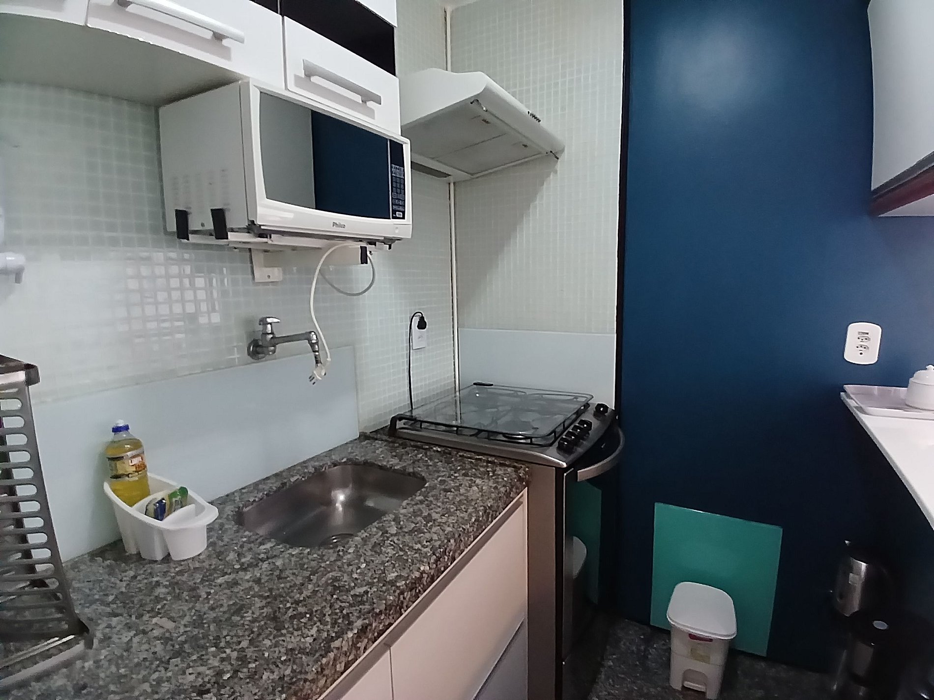 Os hóspedes têm acesso livre a todas as áreas do apartamento, incluindo a varanda e a cozinha compacta. Também podem utilizar as áreas comuns do edifício, como recepção, estacionamento (vaga rotativa) e área de lazer. O acesso é feito de forma prática, com portaria 24h e chave eletrônica para maior segurança e comodidade.