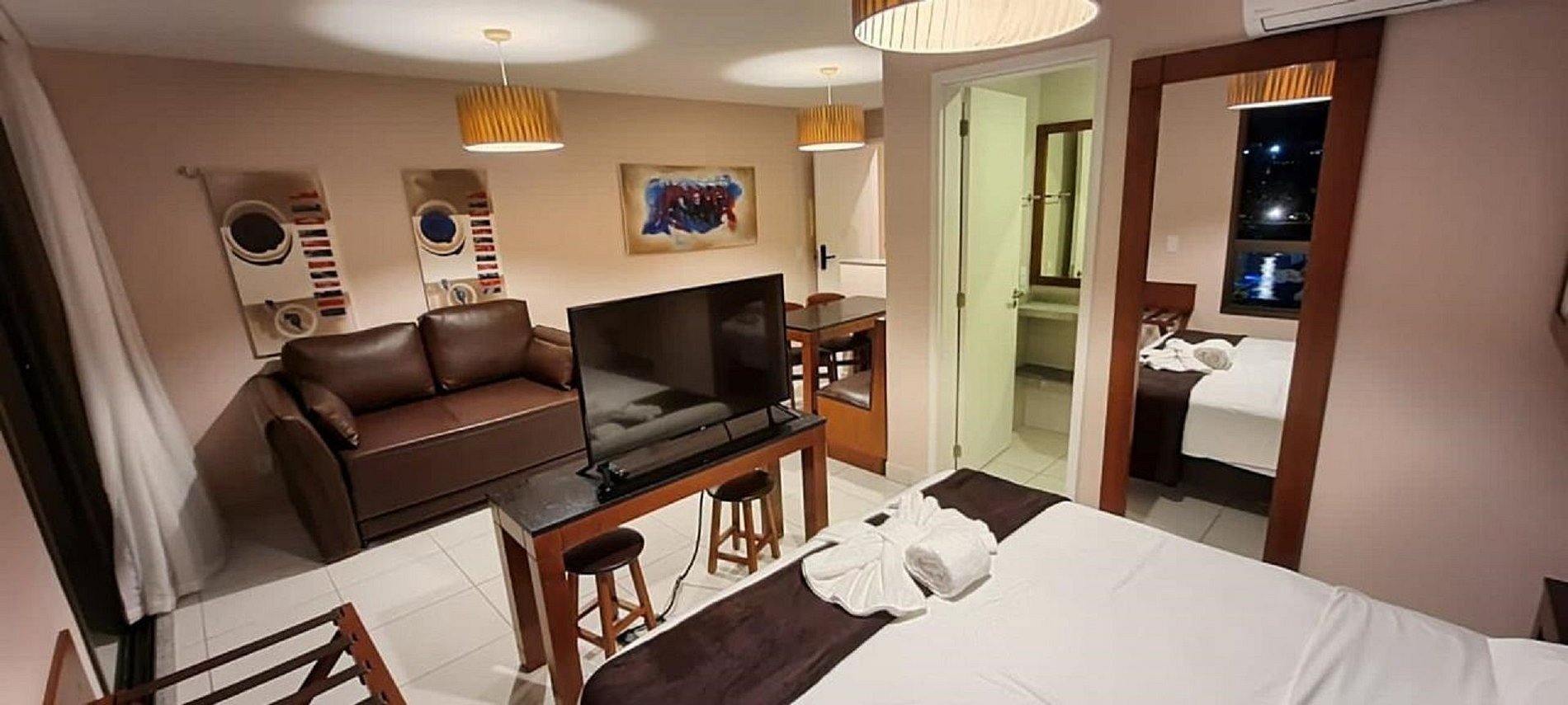O condomínio oferece estacionamento gratuito, interno e descoberto, para hóspedes.