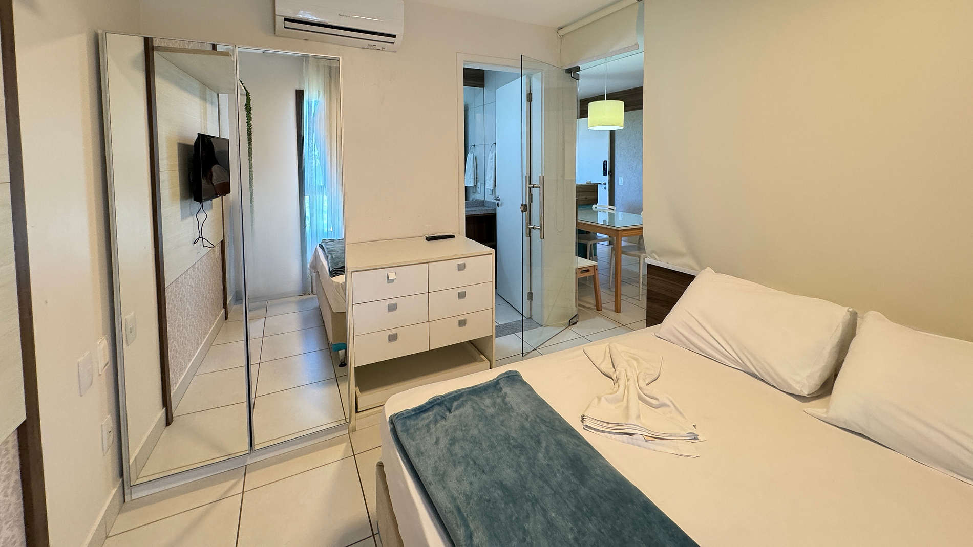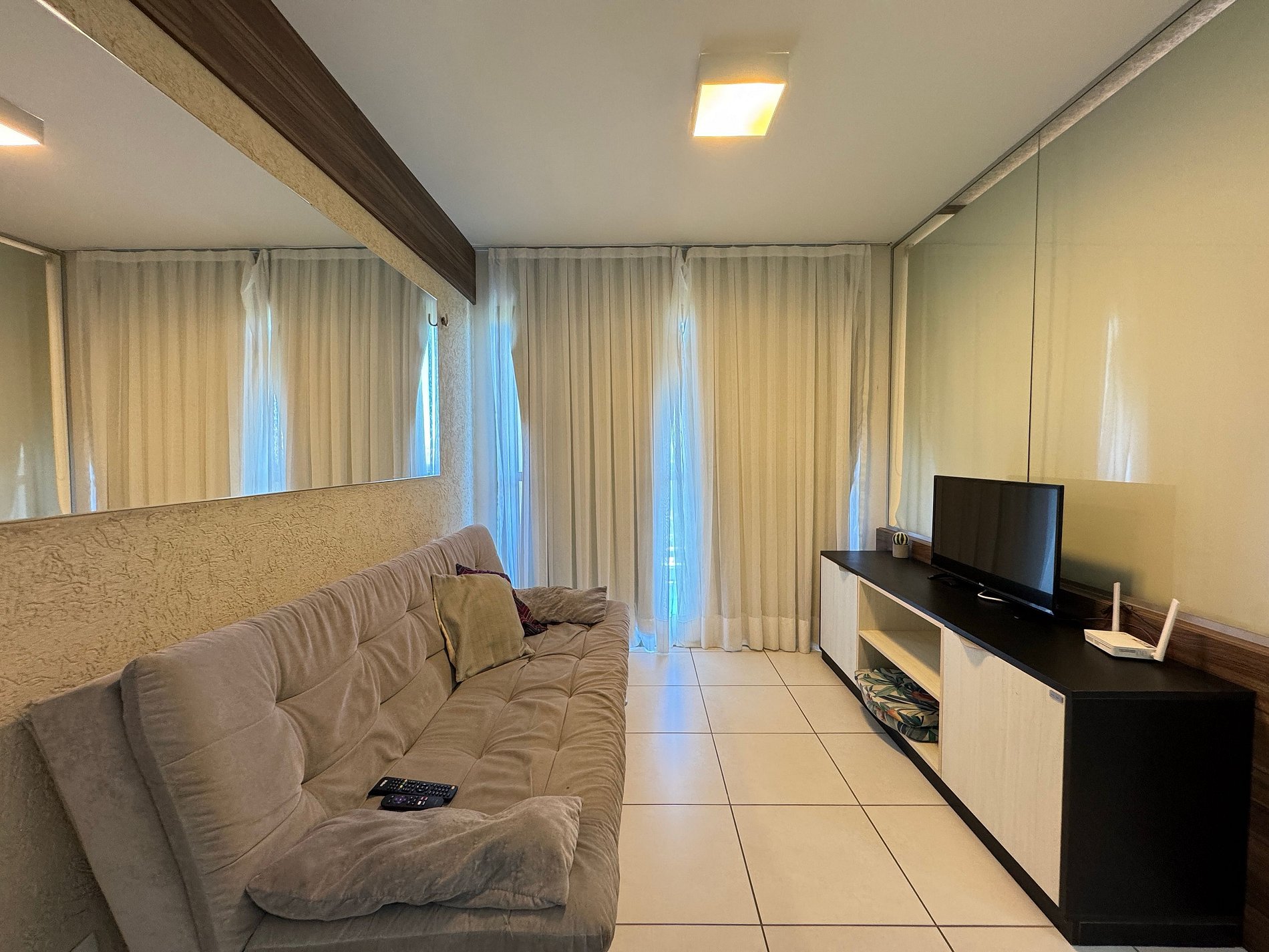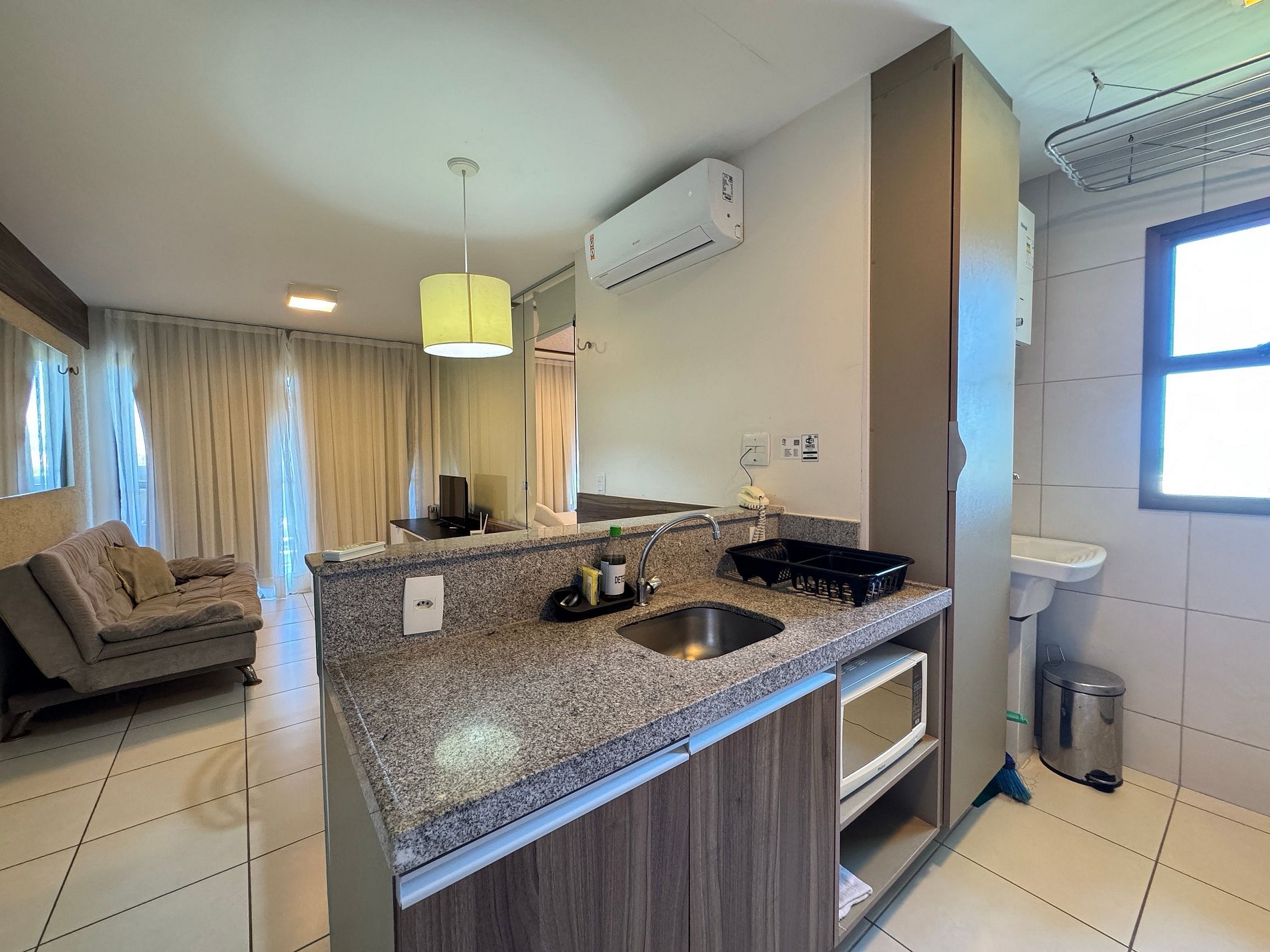 O condomínio é maravilhoso, muitas comodidades, piscina bem grande, academia, quadra de tênis e a o acesso à praia é muito bom. O apartamento que fiquei tem uma linda vista do mar, bem ventilado, com tudo, panelas, pratos, talheres.