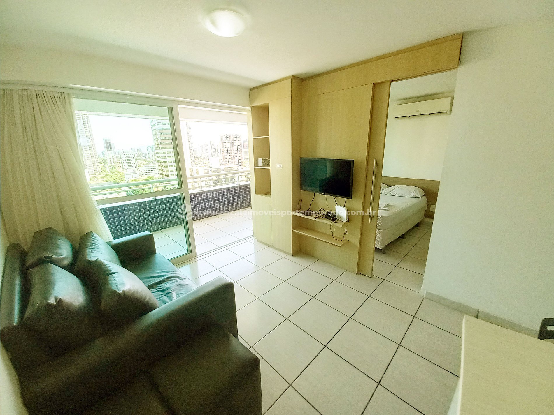 Apartamento com área de 56,00m2 100% mobiliado sala com ampla varanda 2 quartos sendo 1 suíte com cama casal e 1 quarto com cama solteiro (ambos com ar condicionado) Sala com sofá cama Cozinha projetada e equipada 1 Vaga de garagem