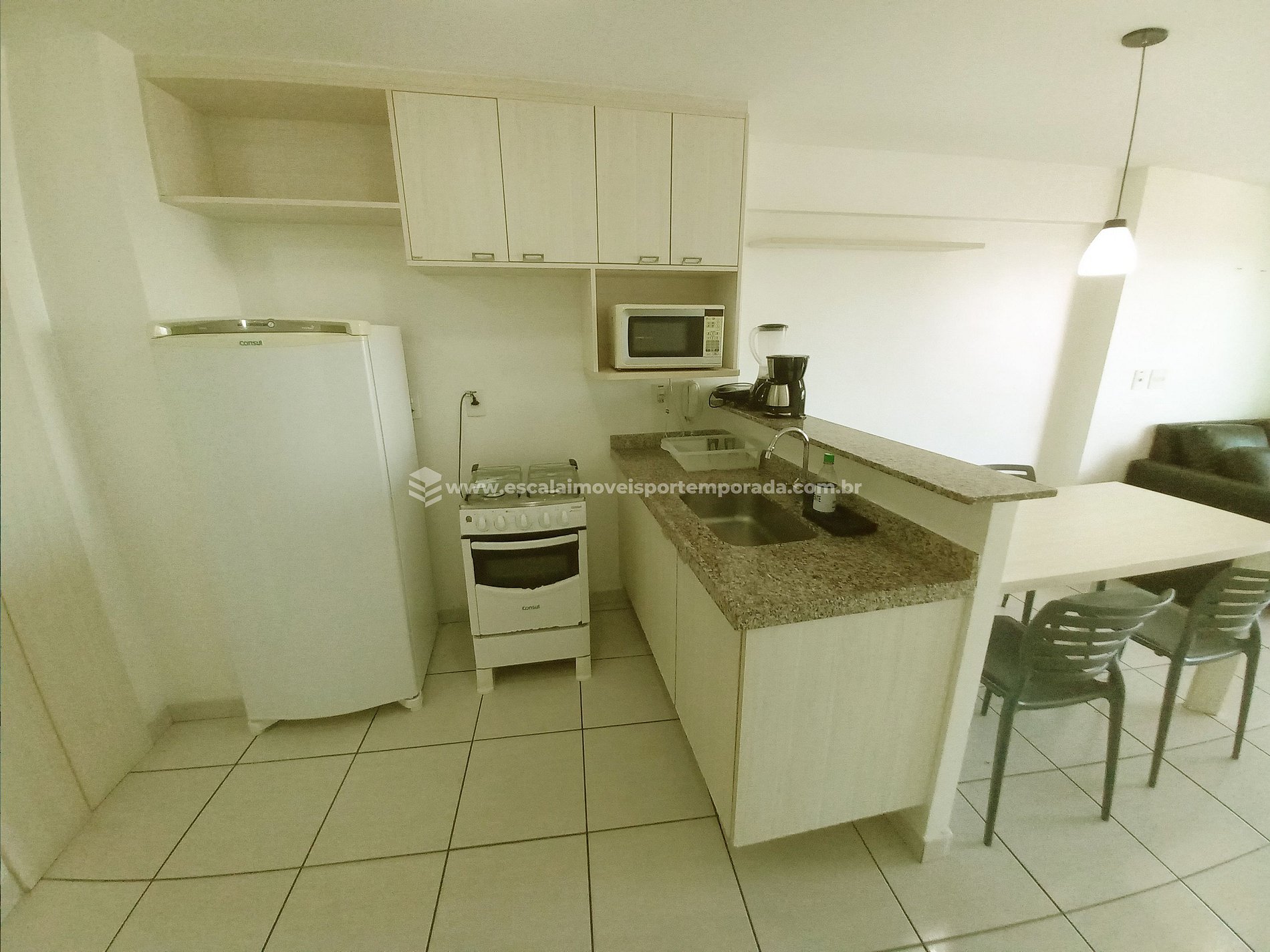 Apartamento com área de 56,00m2 100% mobiliado sala com ampla varanda 2 quartos sendo 1 suíte com cama casal e 1 quarto com cama solteiro (ambos com ar condicionado) Sala com sofá cama Cozinha projetada e equipada 1 Vaga de garagem