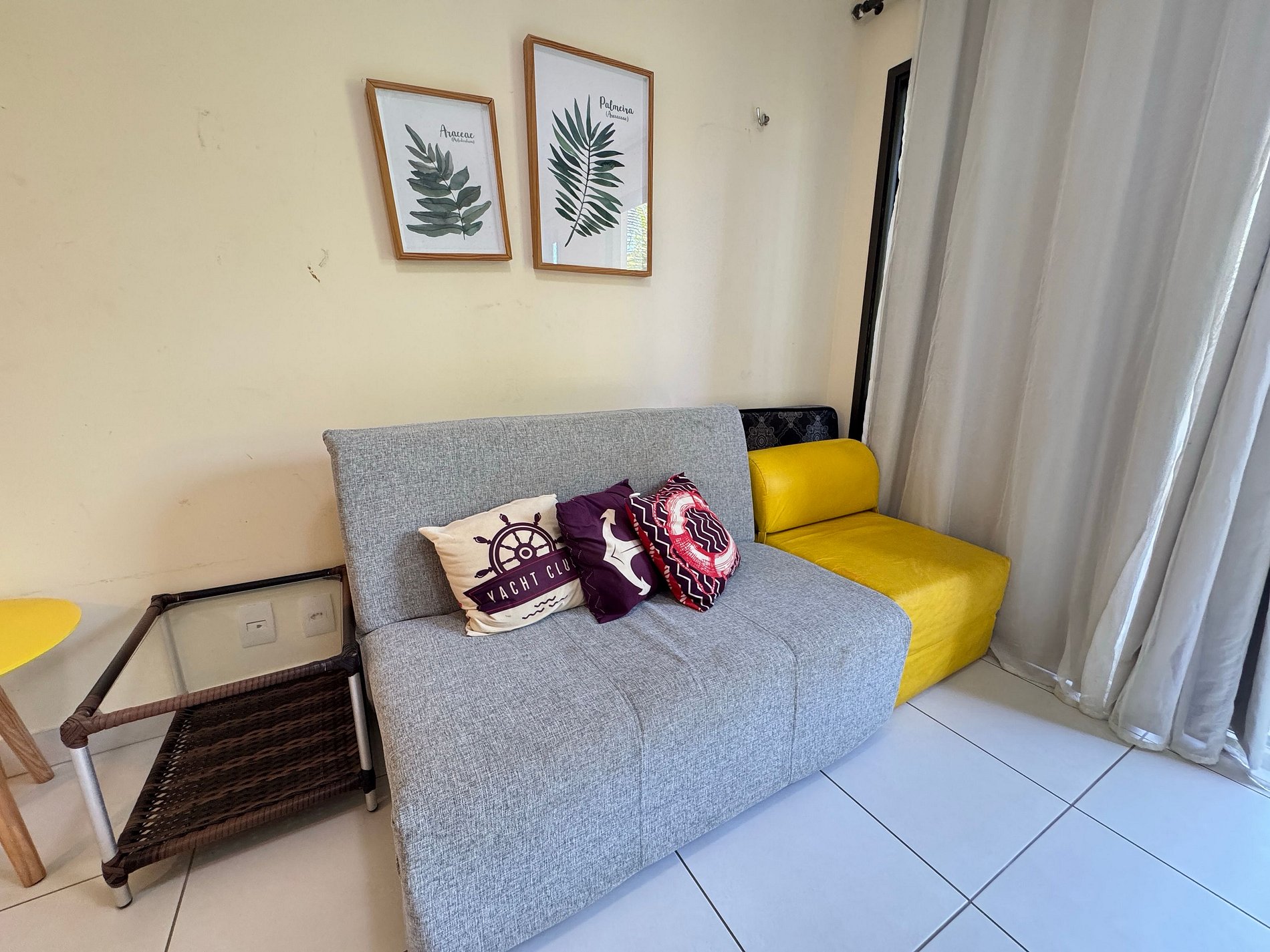 Sala de Estar funcional com sofá-cama, acomodando hóspedes adicionais.