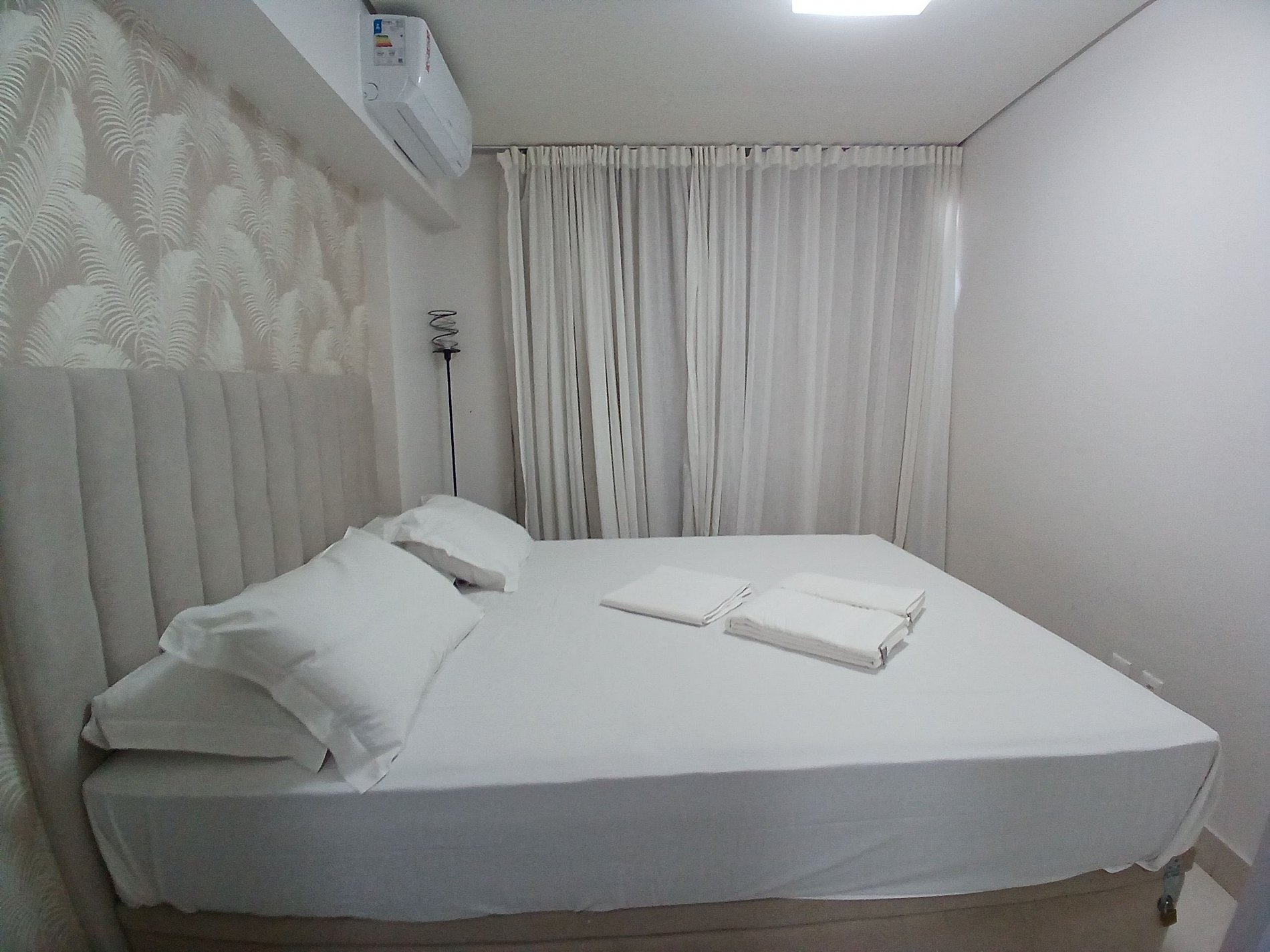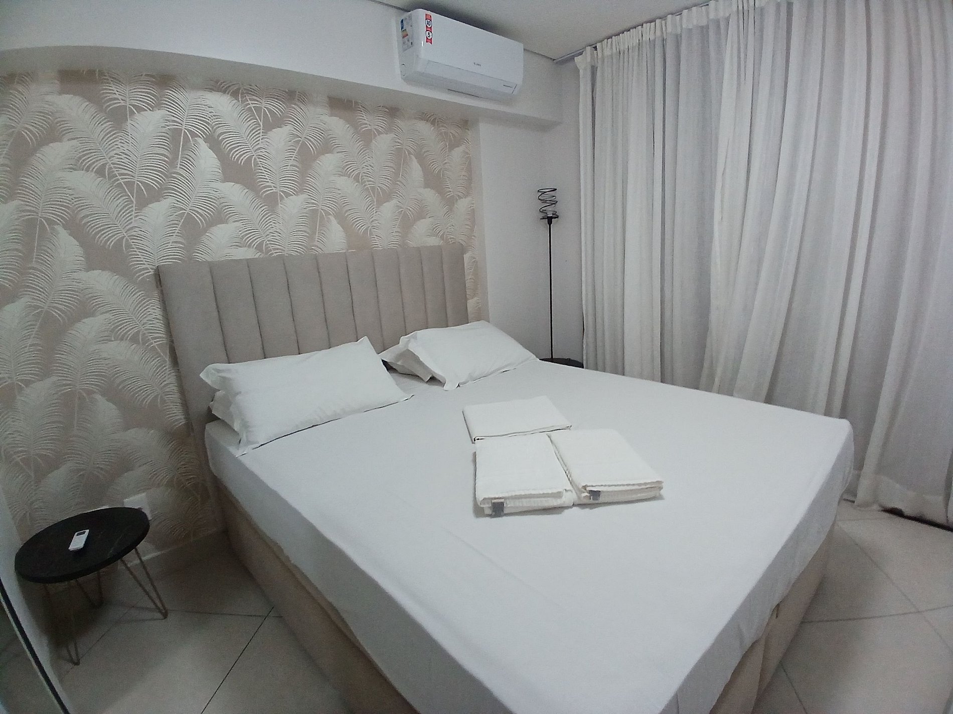 1 suíte com cama de casal e ar-condicionado