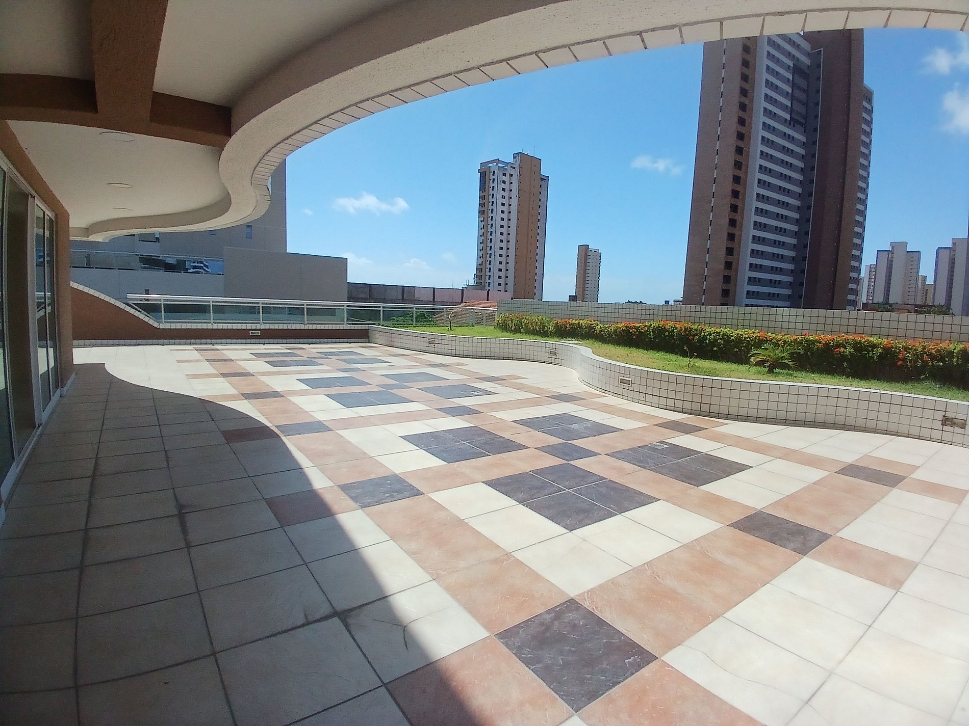 Recepção, estar, salão de festas, salão de ginástica, administração, piscina, deck e churrasqueira.