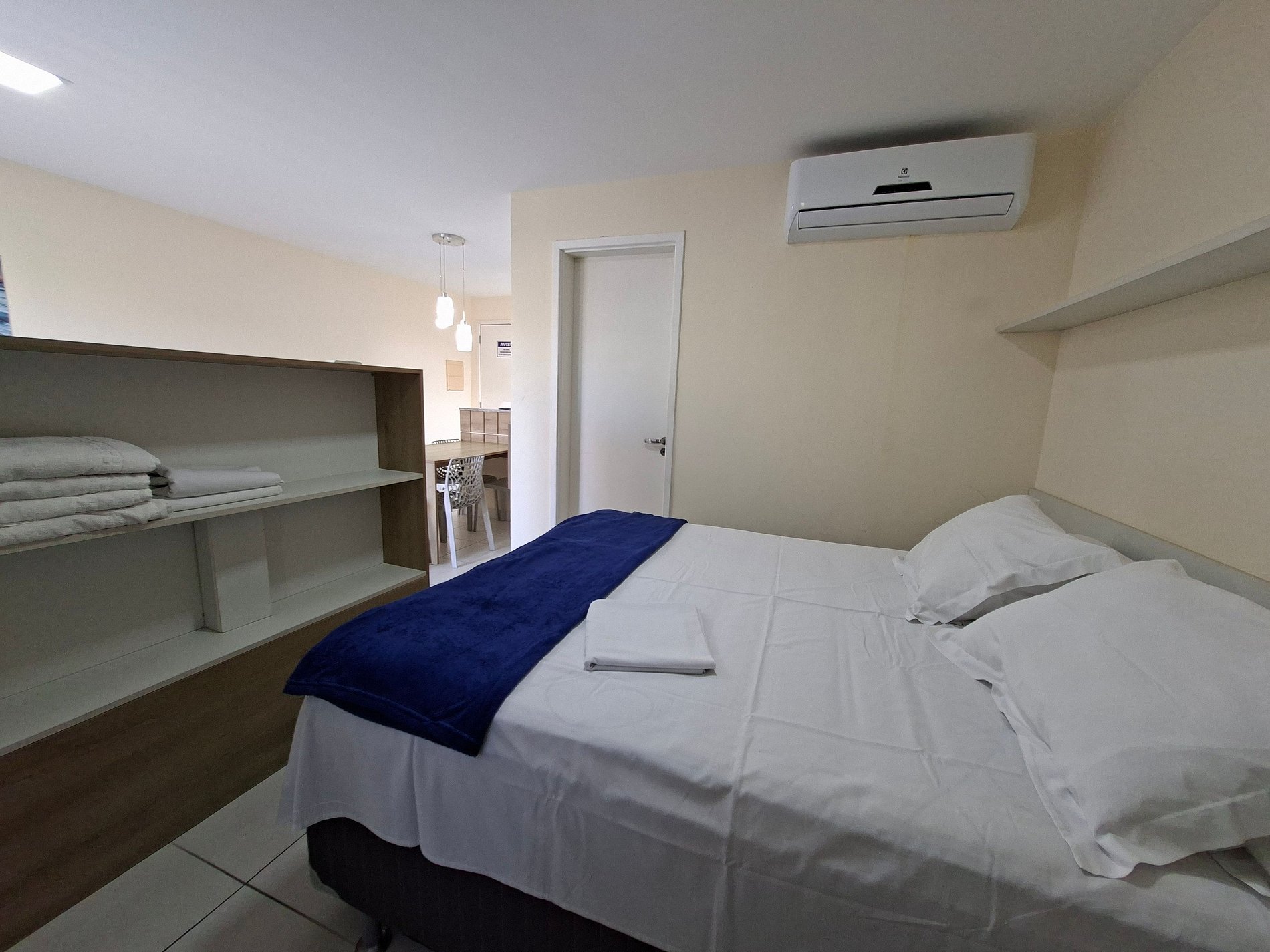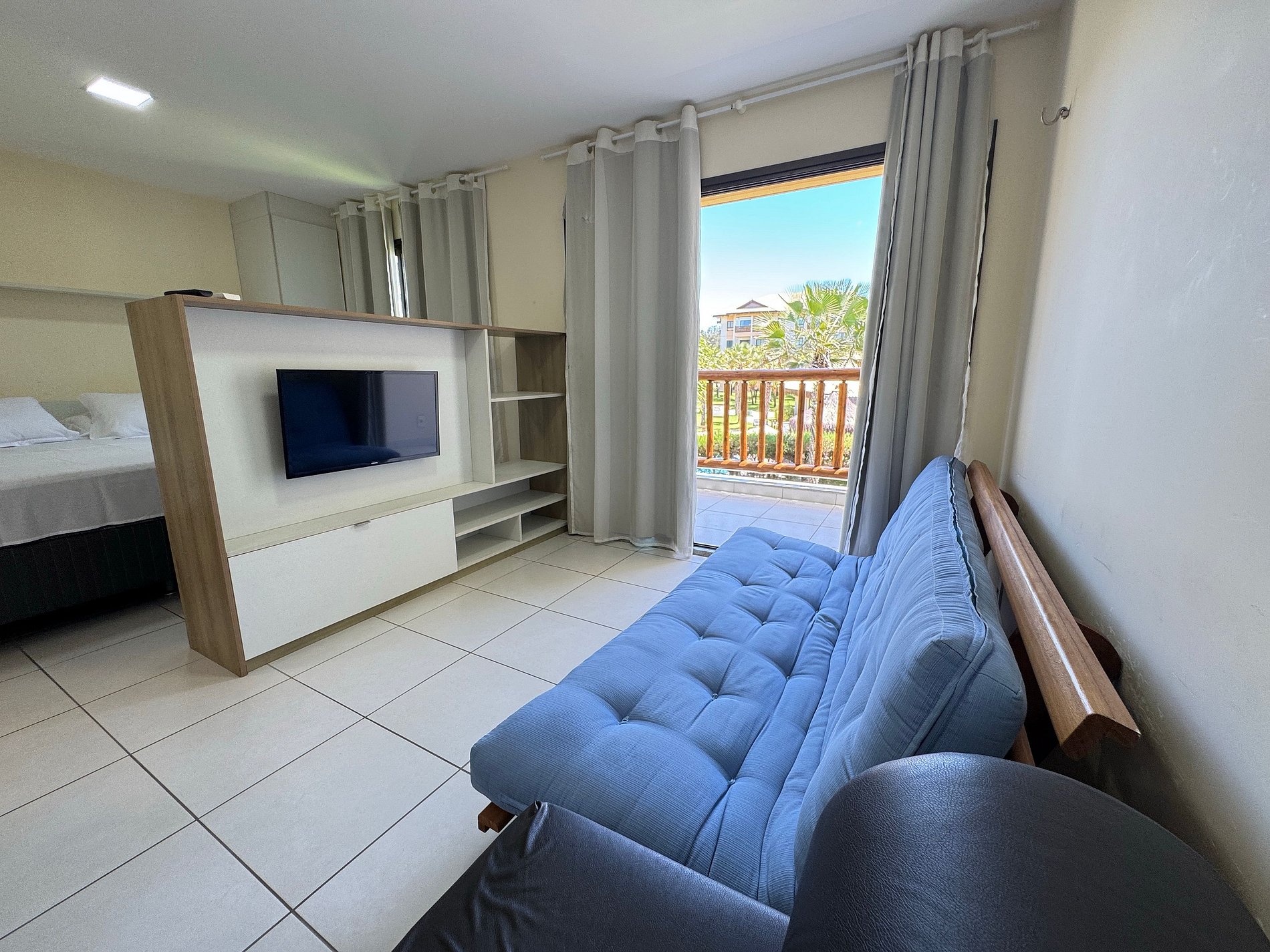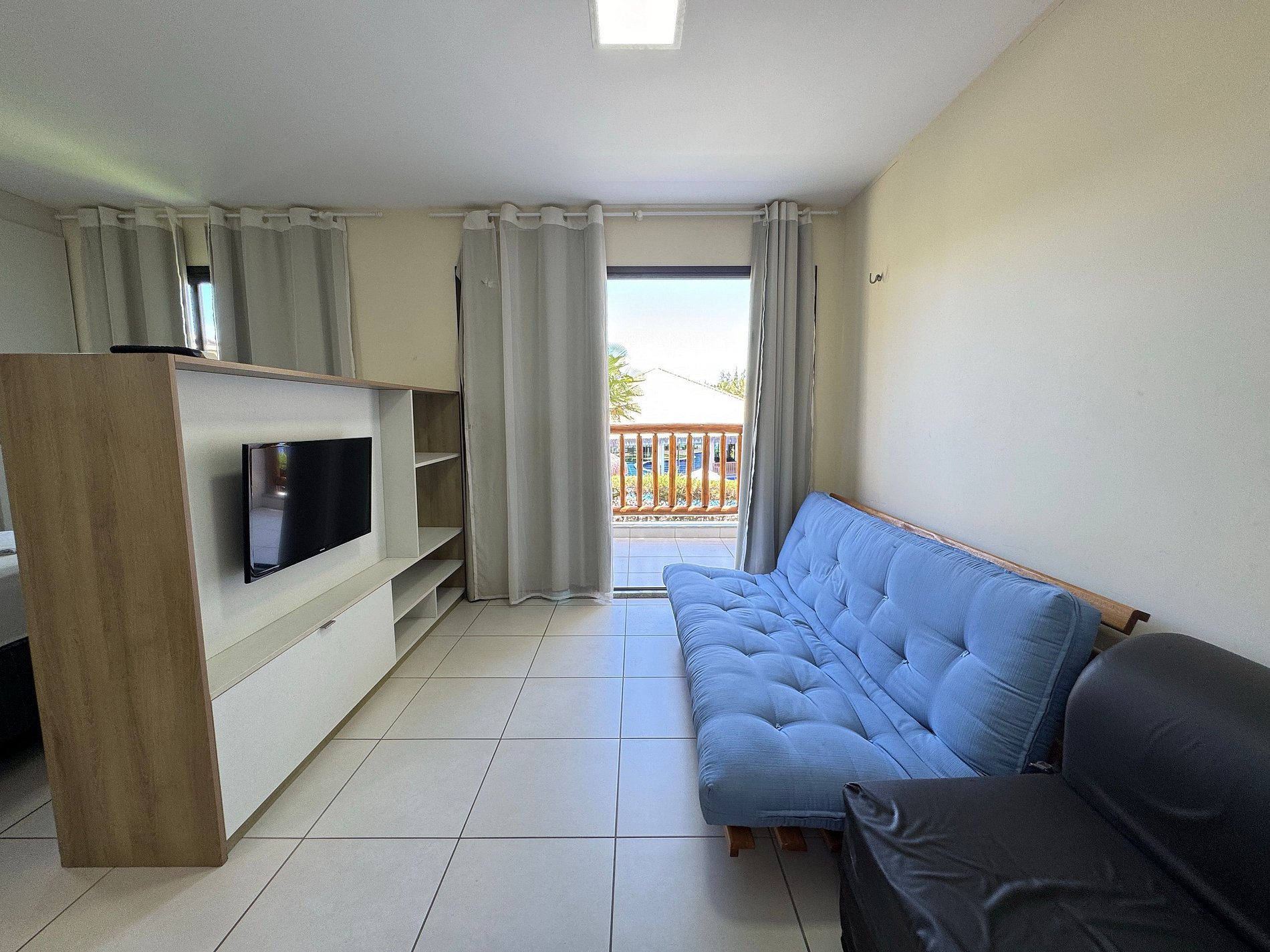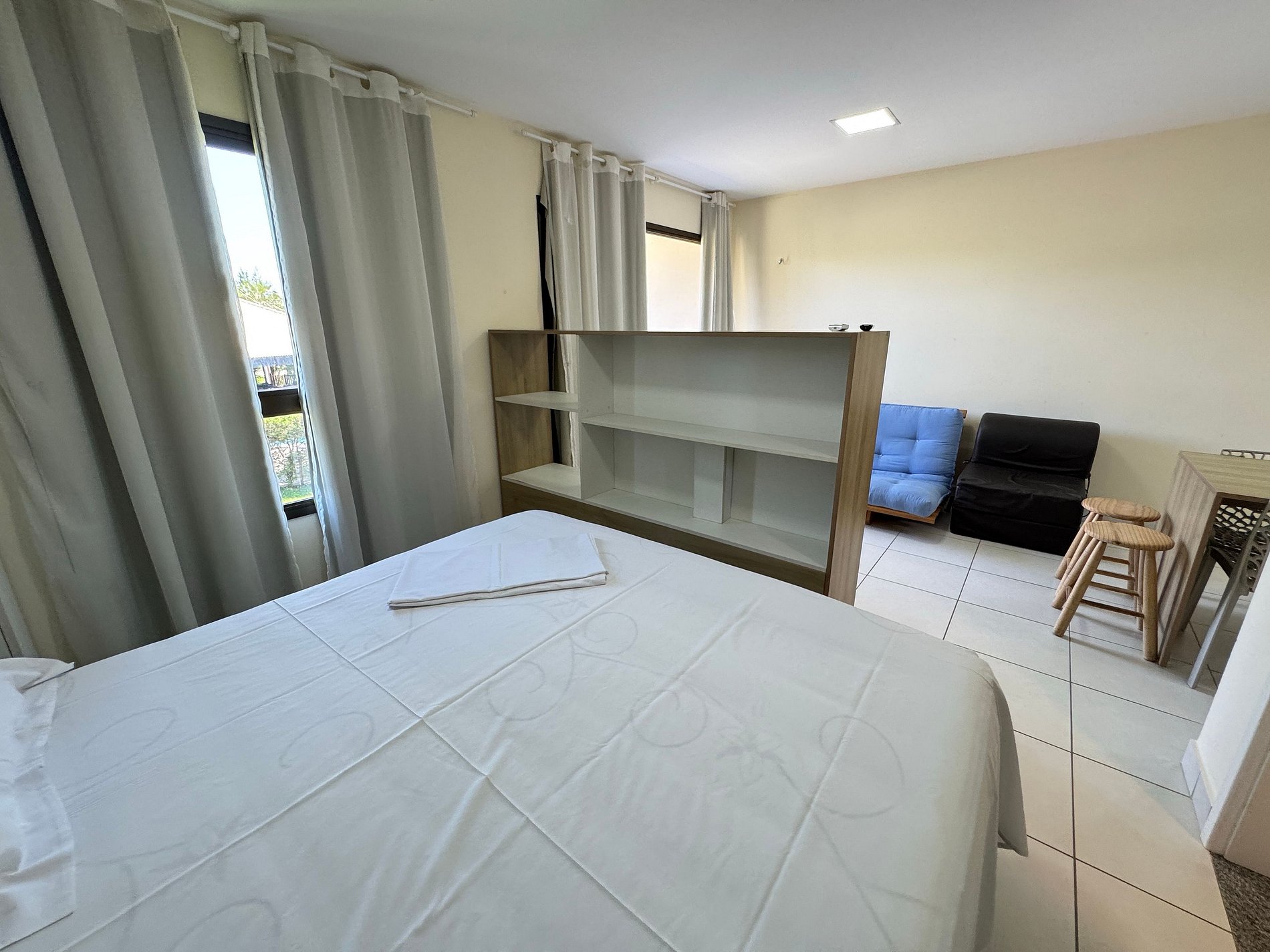 Desfrute de uma suíte charmosa e aconchegante, perfeita para suas noites de descanso. A sala, integrada à cozinha americana, oferece um espaço amplo e convidativo para momentos de convívio. Para seu entretenimento, o apartamento conta com TV e, na cozinha, todos os utensílios domésticos necessários para sua estadia.
