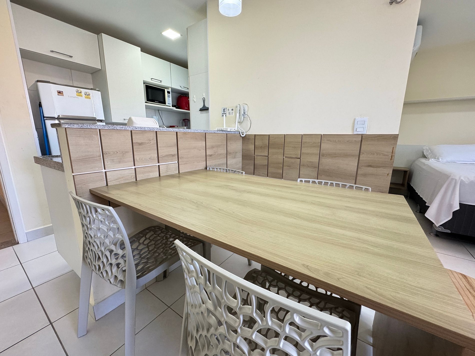 Dentro desse cenário ideal, apresentamos um apartamento de alto padrão, cuidadosamente projetado para o seu bem-estar. Com uma área de 39,53m², este imóvel possui um fino acabamento e é 100% mobiliado com móveis planejados, garantindo um ambiente moderno e funcional.